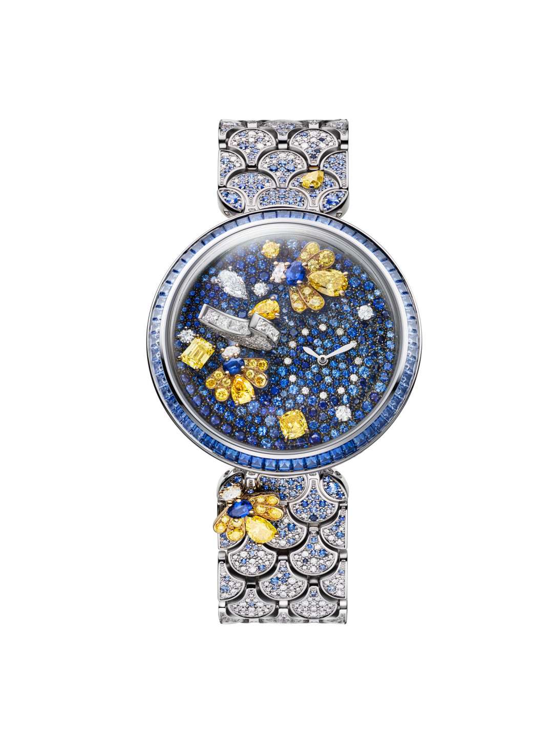 Рафинированное швейцарское часовое мастерство пересекается с умением ювелирного Дома работать с редкими и уникальными камнями. Так, часы-кулон Nuvole Preziose, вдохновленные полиморфной красотой Рима, напомнили винтажную брошь Дома с бабочками и облаками. Последние можно снимать и носить отдельно как серьги. Изделие Notte Stellata Diva — символ темной ночи, которую озаряют лишь светлячки. Под куполом расположилась объемная луна, инкрустированная бриллиантами.