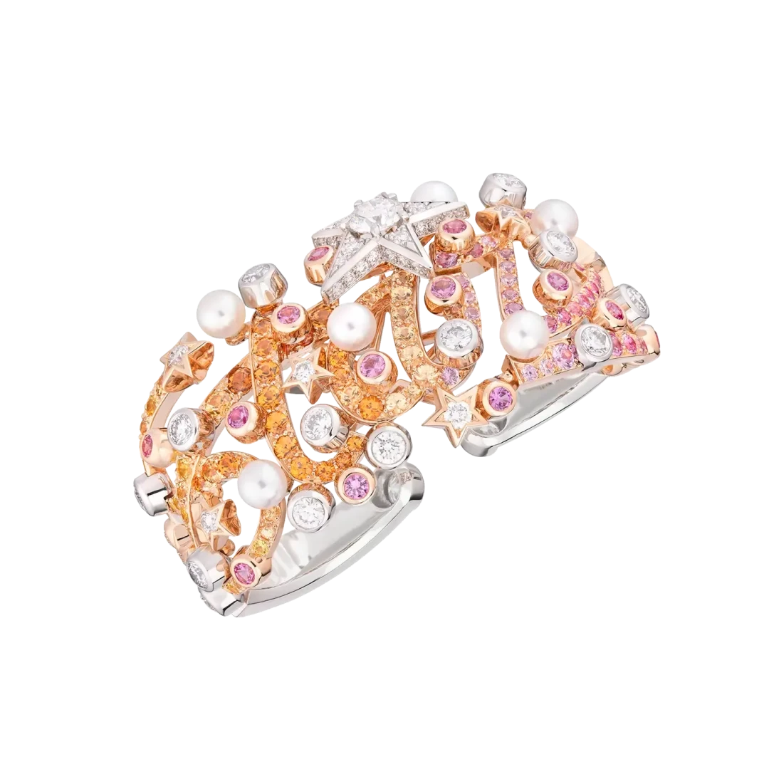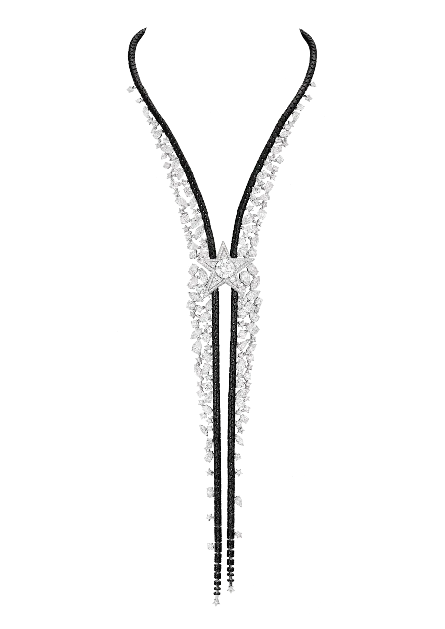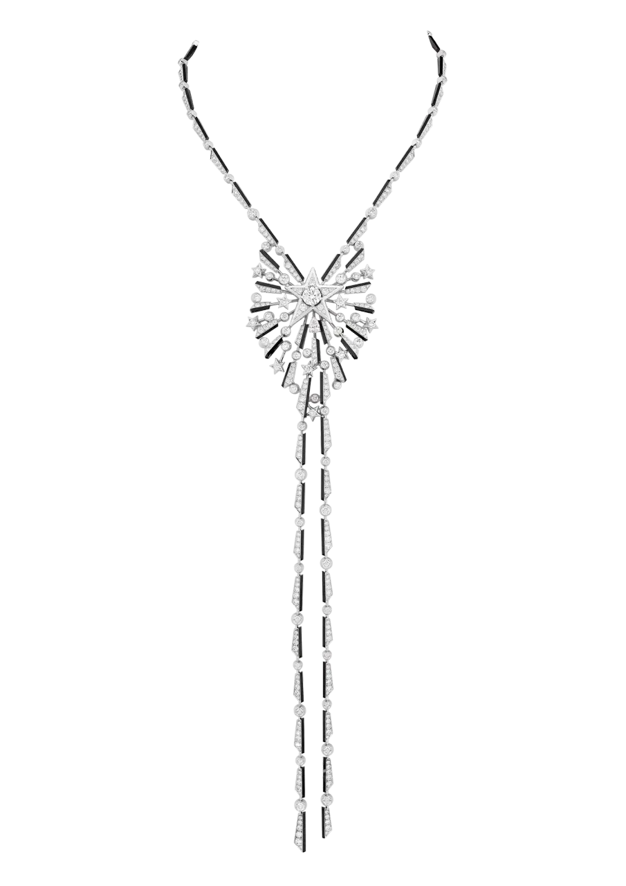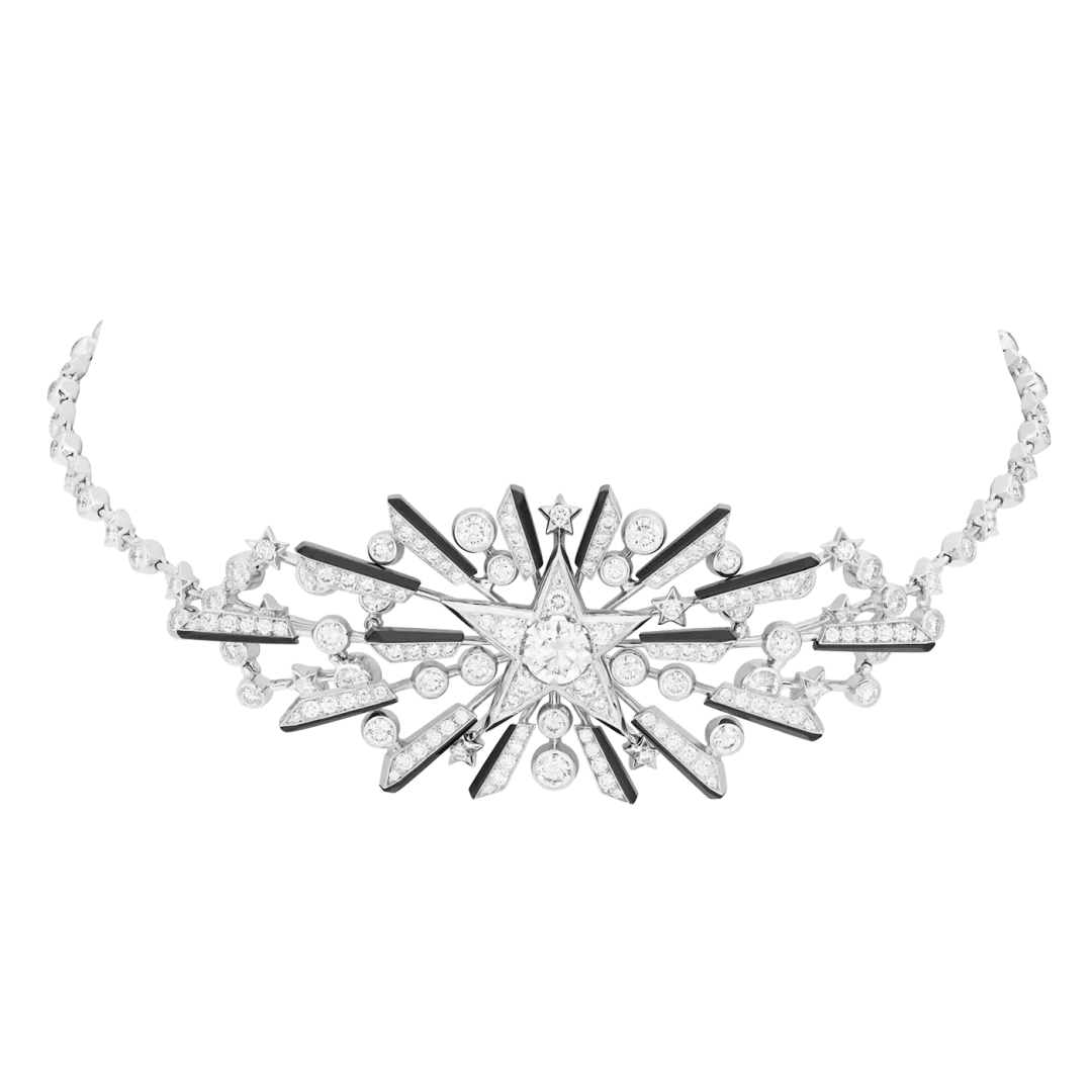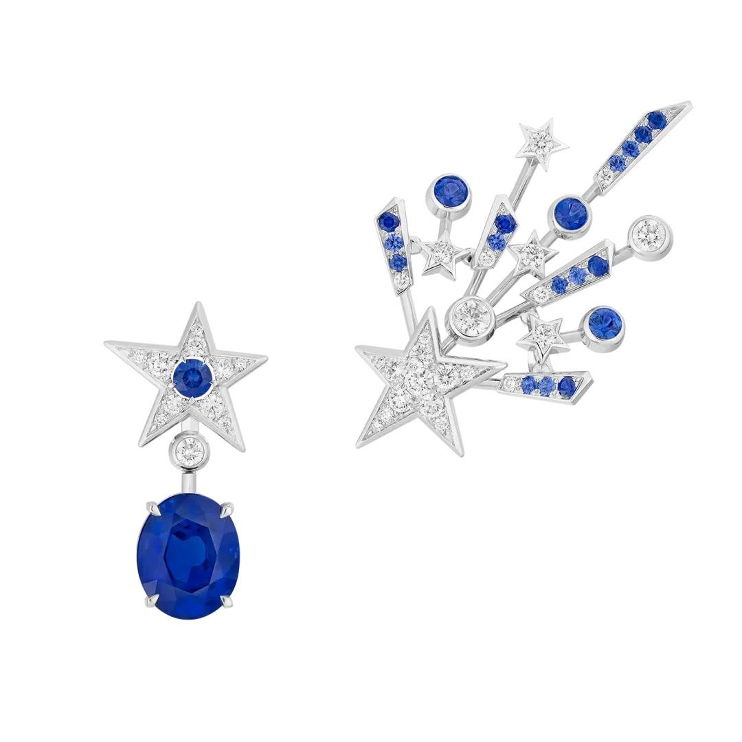 В 1932 году Коко Шанель выпустила свою единственную коллекцию высокого ювелирного искусства. Тогда украшения были декорированы культовыми звездами. Команда Дома превратила их в кометы Blazing Star с тонкими линиями из золота и оникса. Лаконичная линия включает в себя удлиненные колье, крупные кольца, манжеты и серьги, инкрустированные белыми бриллиантами, танзанитовыми бусинами, а также синими и розовыми сапфирами.