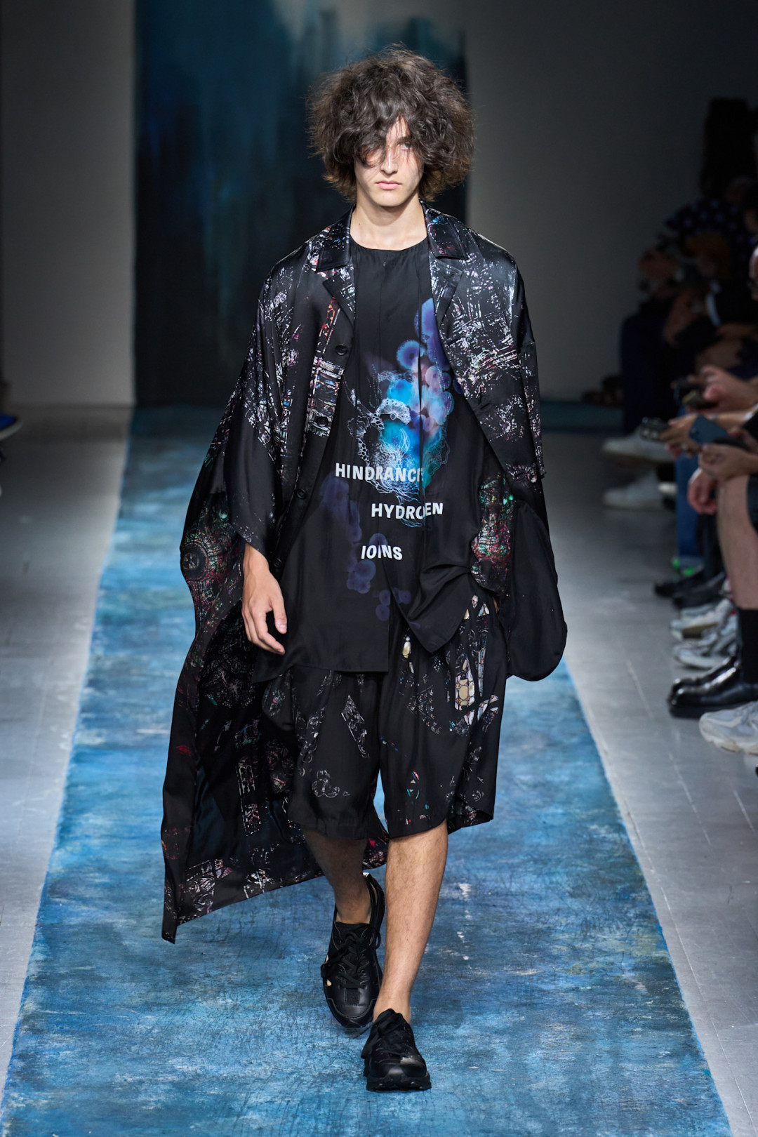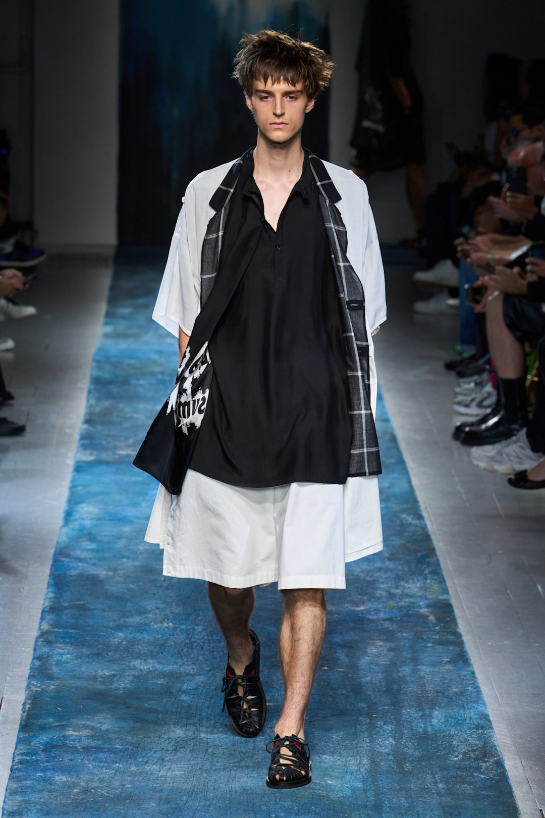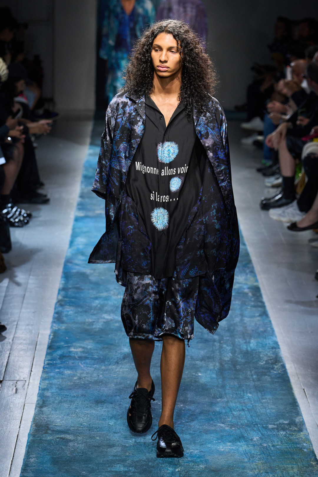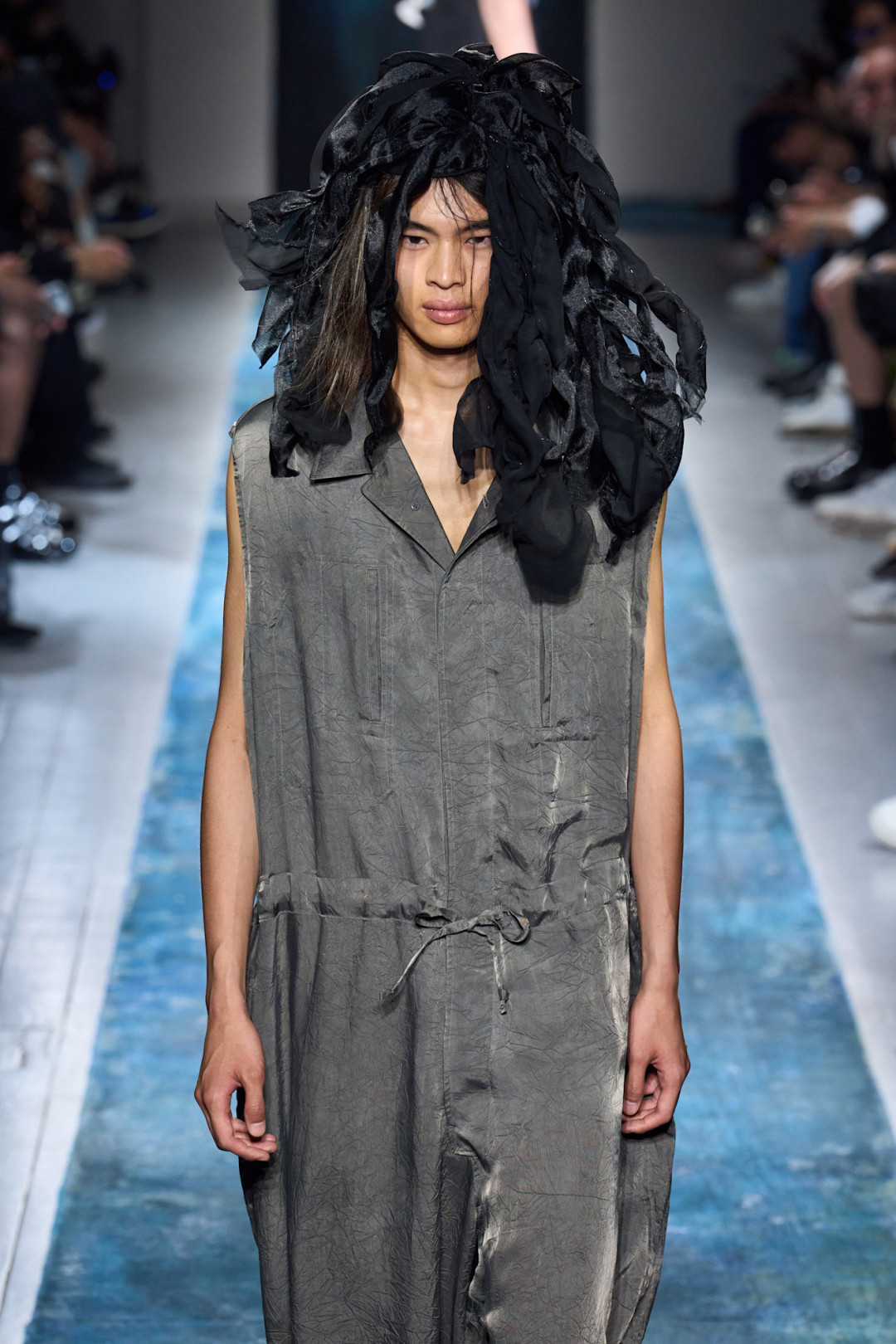 Ёдзи Ямамото устал от войн и политических конфликтов, поэтому сделал свое заявление. Он создал линию, которая пропитана духом пацифизма и панка одновременно. Мрачные наряды черного оттенка с редкими всплесками белого и лазурного цветов носят словно современные хиппи, которые голосуют за мир во всем мире. Коллекция, по задумке дизайнера, выглядит разрозненной и «неоднородной», но все это лишь импульс накопившегося гнева. Укороченные брюки, свободные шифоновые блузы, кимоно, деконструктивные рубашки и намеки на воду и пролив Ла-Манш дарят свободу самовыражению. К этому у 81-летнего модельера никогда не перестанет лежать душа.