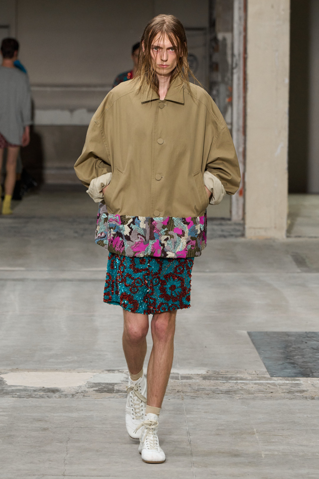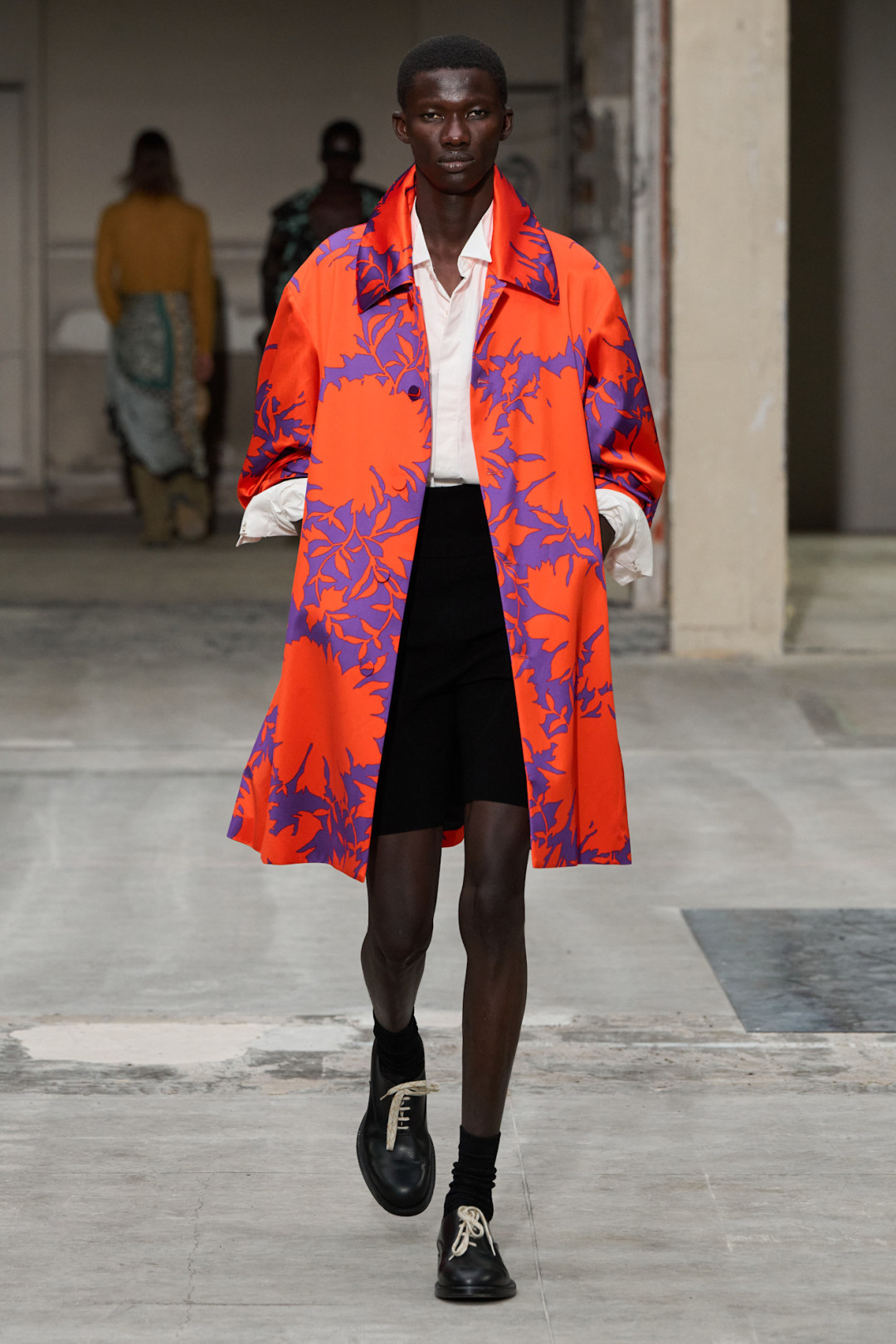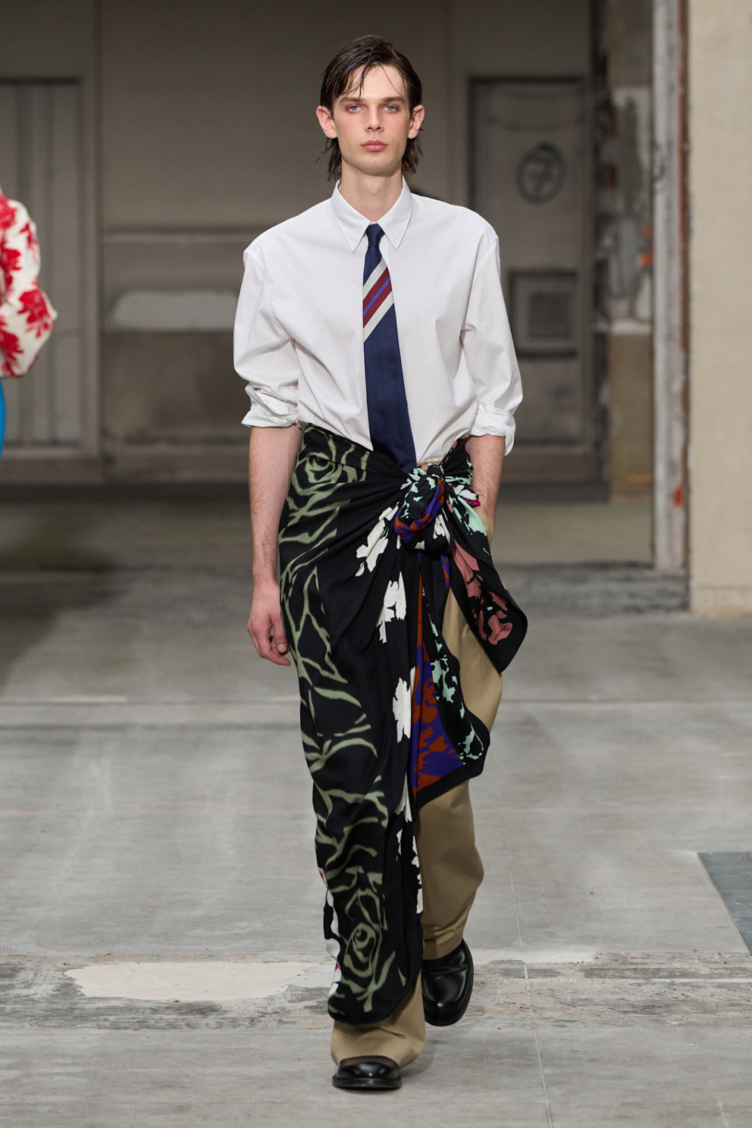 Первый показ Джулиана Клауснера, можно сказать, открывает череду дебютов, которые поклонники мира моды ждут с замиранием сердца. Преемнику Дриса ван Нотена удалось довольно емко объяснить, почему именно он был выбран на этот пост. Яркая, колоритная коллекция пока что считается самой выразительной на мужской Неделе моды в Париже. Модельер и его команда очень грамотно поработали с принтами, вышивкой и стилизацией. Саронги, надетые поверх классических брюк, пестрые пальто и смешение нескольких принтов разных оттенков хорошо отражают эстетику бренда. Клауснер это знает и напоминает всем, что вектор марки не изменился, но явно обрел новые грани.
