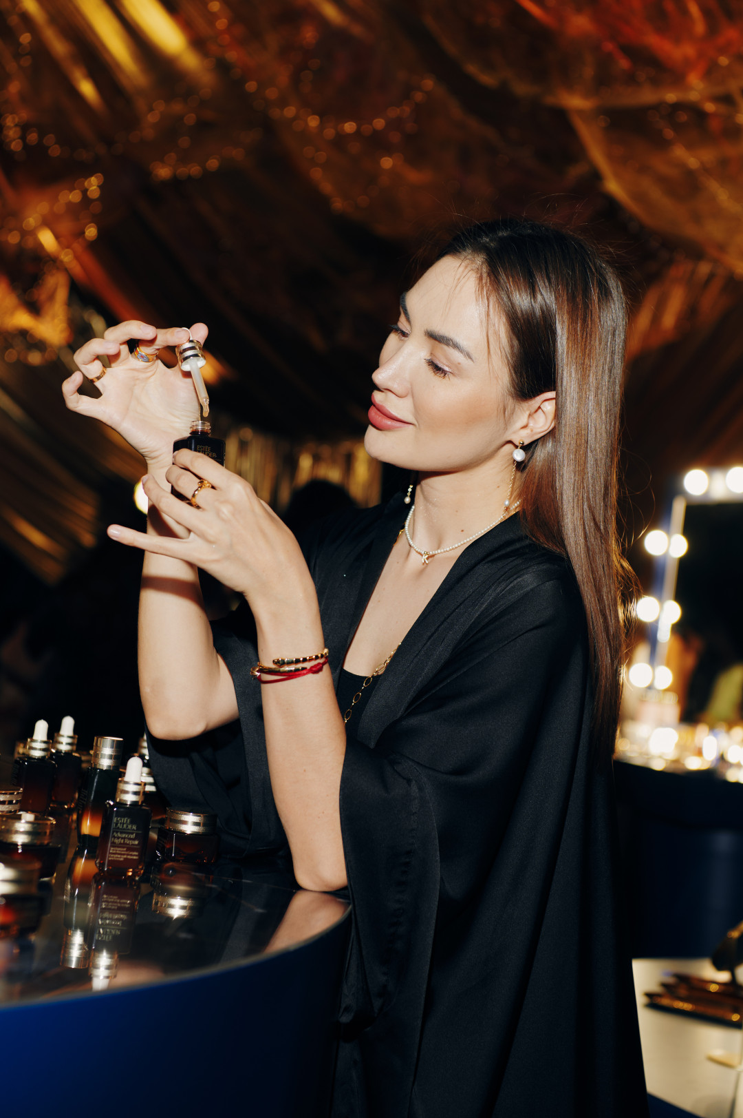 Главной героиней вечера стала легендарная сыворотка Advanced Night Repair. Культовый продукт Estée Lauder, созданный в ритмах ночи, помогает подготовить кожу к новому дню. Благодаря технологии Chronolux™ Power Signal средство эффективно борется с видимыми признаками старения, запускает процесс восстановления и удерживает влагу в течение 72 часов. Впервые сыворотка была представлена в 1982 году и за несколько десятилетий сумела стать незаменимой помощницей в уходе за кожей.