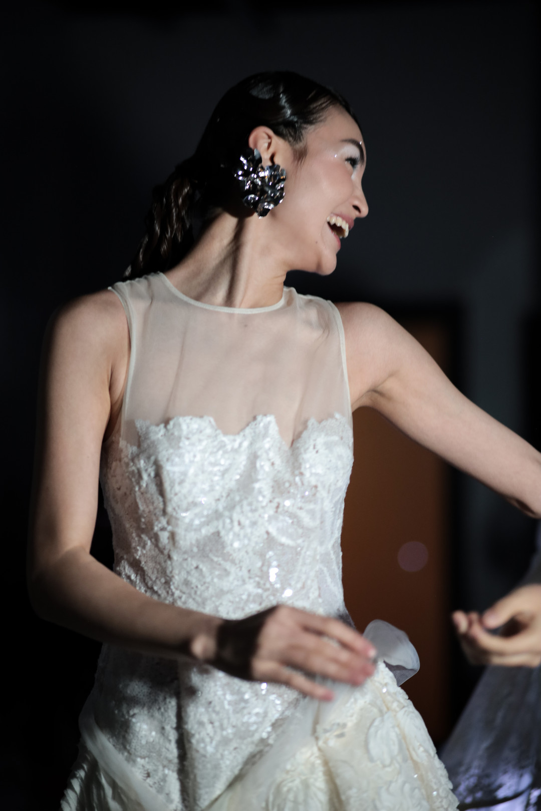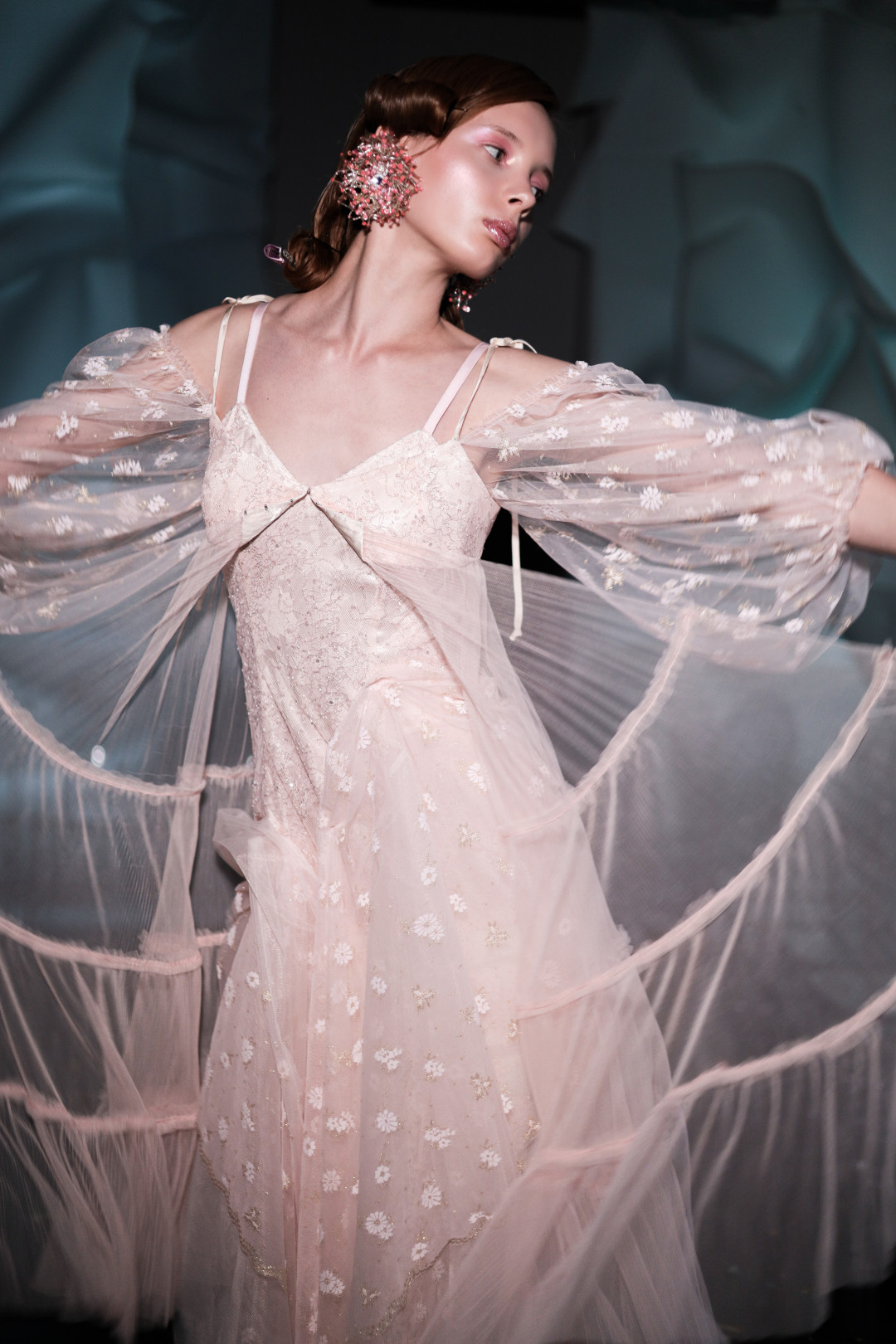 Показ начался с вальса, который исполнили профессиональные танцоры. Затем появились и сами модели, которые вместо привычного дефиле кружились и двигались с изяществом и свободой. Весь этот модный перформанс напомнил фантазию, что проносится по вечернему небу или снится по ночам. Tatyana Yan пригласили гостей шоу отправиться с ними сквозь тьму навстречу свету.