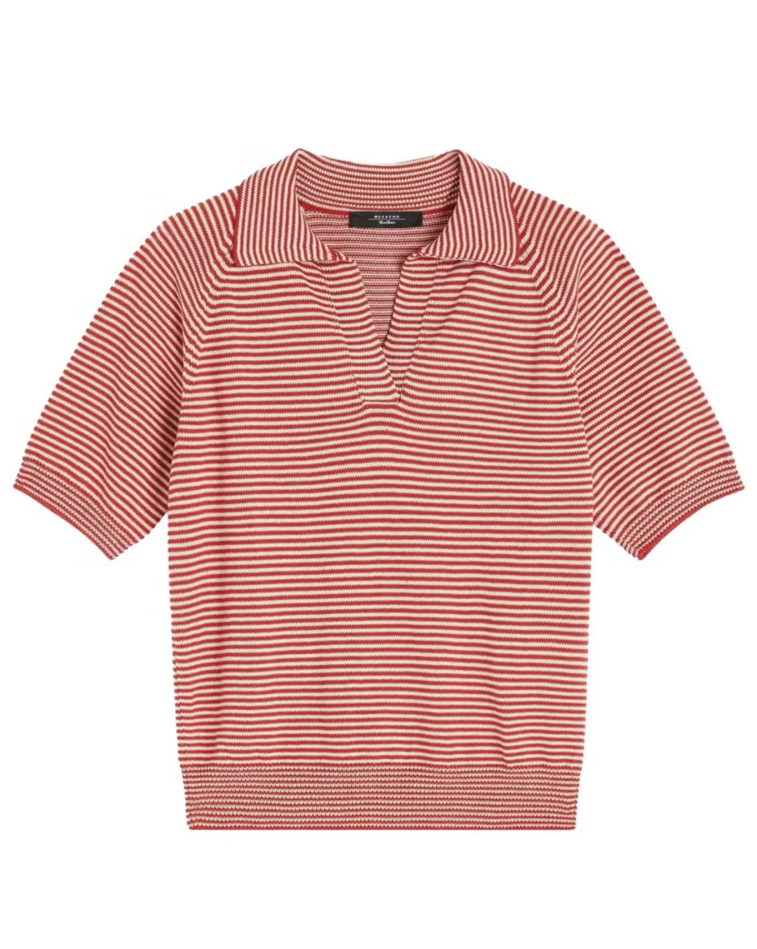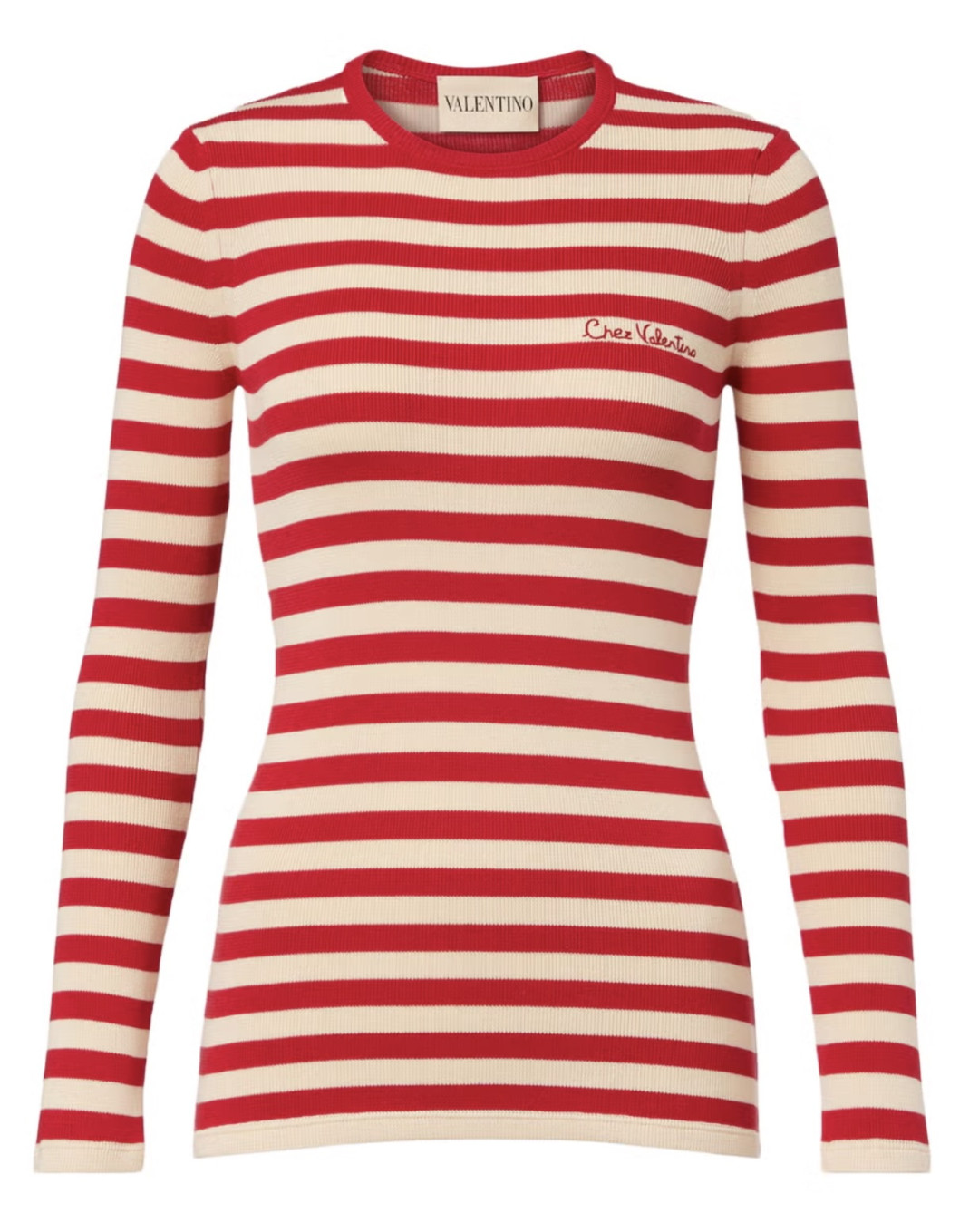 Как мы уже сказали, трендовые поло отпускать совершенно не хочется. Поэтому верх в красную полоску трансформируется в лаконичные трикотажные изделия в стиле преппи. Эстетика в принципе всегда считается злободневной и не покидает мир моды ни на день. Берем на заметку.