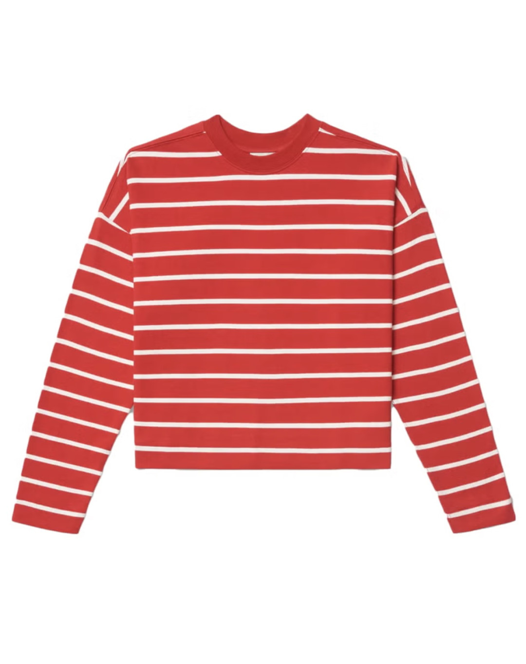 В этом году осенние тенденции стали просачиваться в мир фэшн раньше обычного. На самом деле в этом нет ничего удивительного, просто многие скорее хотят притянуть время теплых какао, уютных свитеров и прогулок по желтой листве (или оказаться в цикле книг «Где Уолли?»). Верх в красную полоску — топы, кардиганы, блузы и футболки — поможет осуществить задуманное. Незамысловатые и яркие модели словно стали продолжением тренда на поло с длинными рукавами, которые мы, по всей видимости, не хотим отпускать. Рассказываем, на какие изделия обратить внимание, чтобы не потерять свои фэшн-баллы.