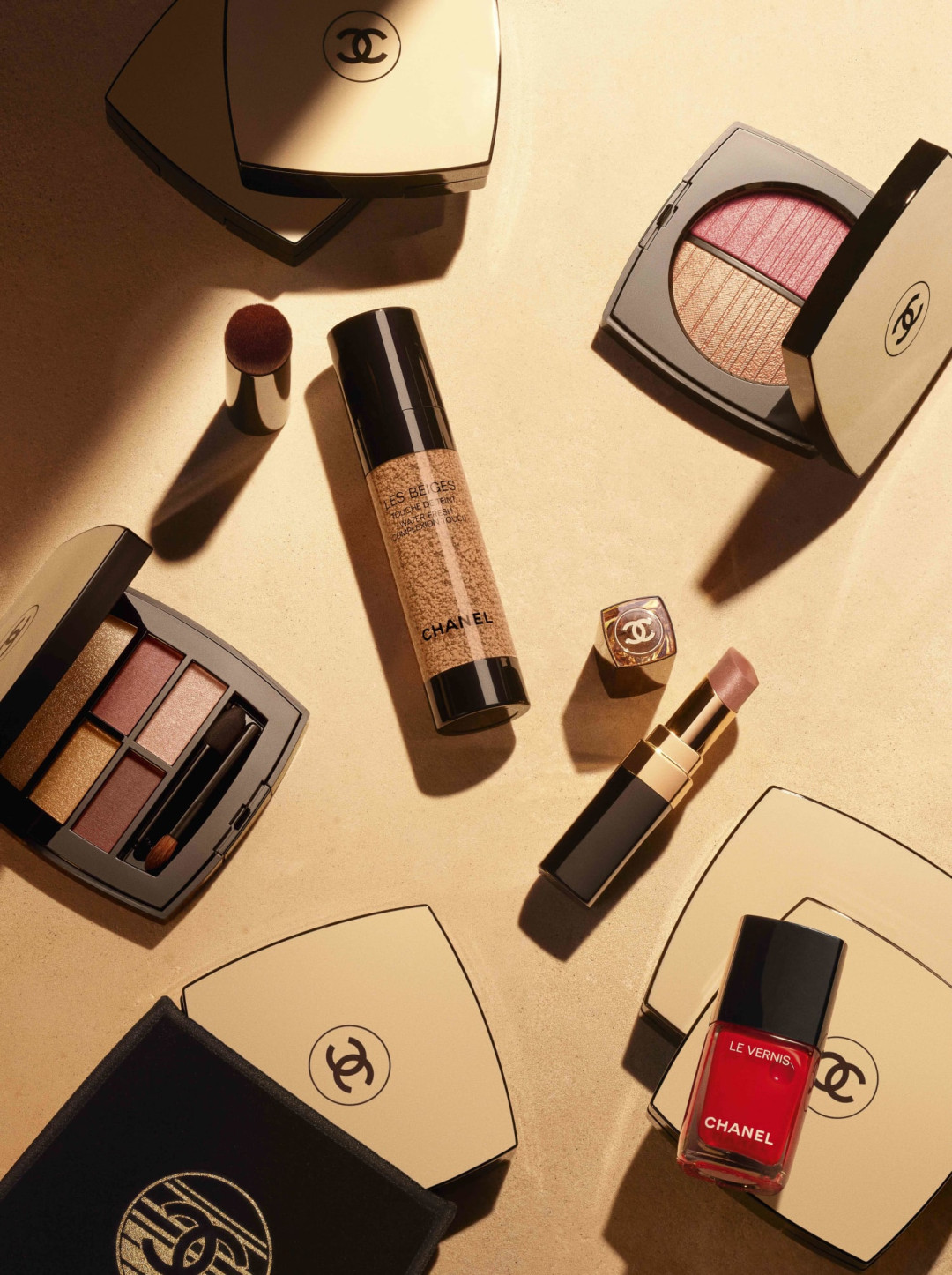 Теплая и радостная цветовая палитра этой летней линии приглашает продлить живую энергию золотого часа на целый день. Сделать это будет легче с двойной пудрой, которая обеспечивает естественное сияние благодаря мерцающим частицам. Румяна в стике помогут добиться легкого загара, а палитра теней с розовыми и персиковыми оттенками подчеркнет ваш выразительный взгляд. В коллекцию LES BEIGES также вошли четыре новых тона помад-блесков и два лака для ногтей — золотистый и оранжево-красный.