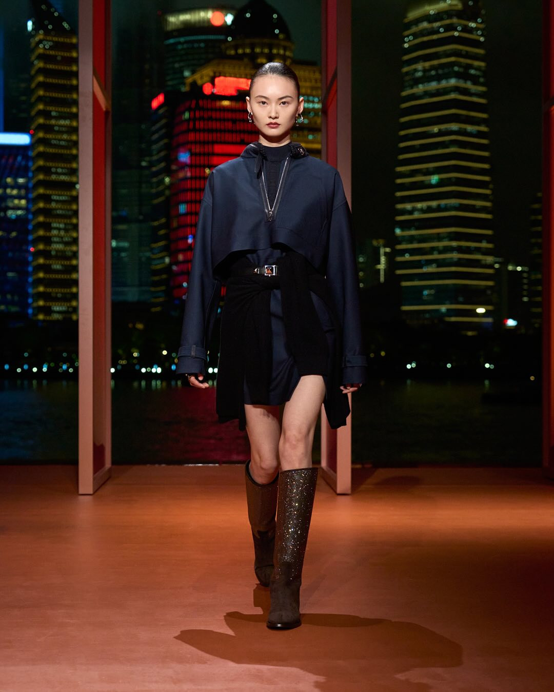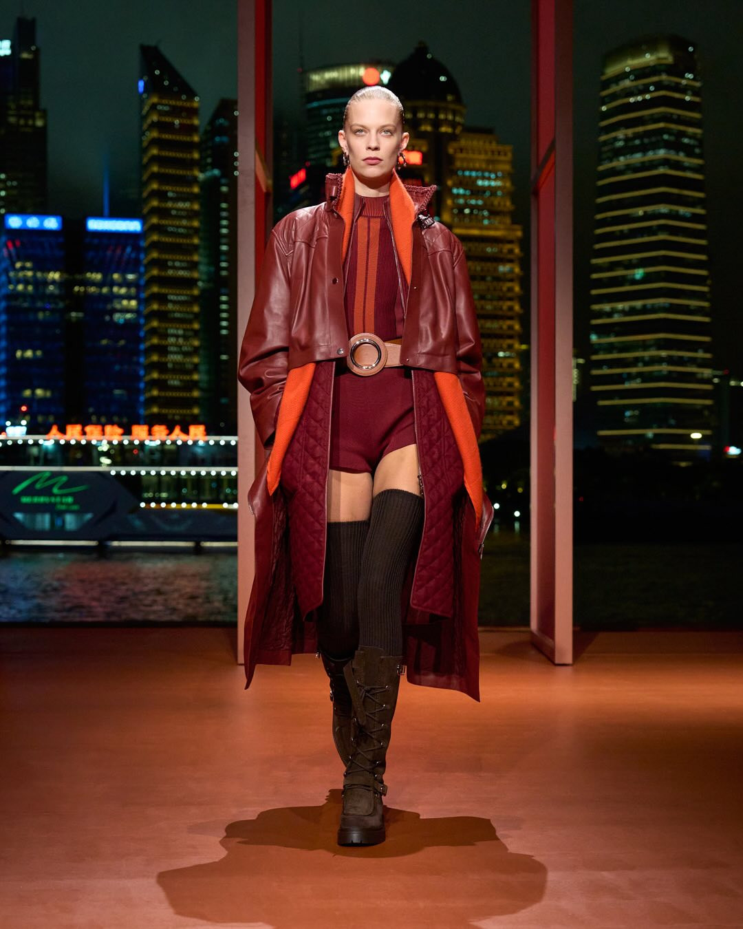 Надеж Ване-Цыбульски — креативный директор французского Дома — привыкла играть по своим правилам. Поэтому в то время, когда ее коллеги презентуют круизные линии, она решила выпустить продолжение осенне-зимней коллекции 2025 года. Для этого дизайнер и команда Hermès собрали гостей и друзей бренда у залива Норт Бунд в Шанхае.