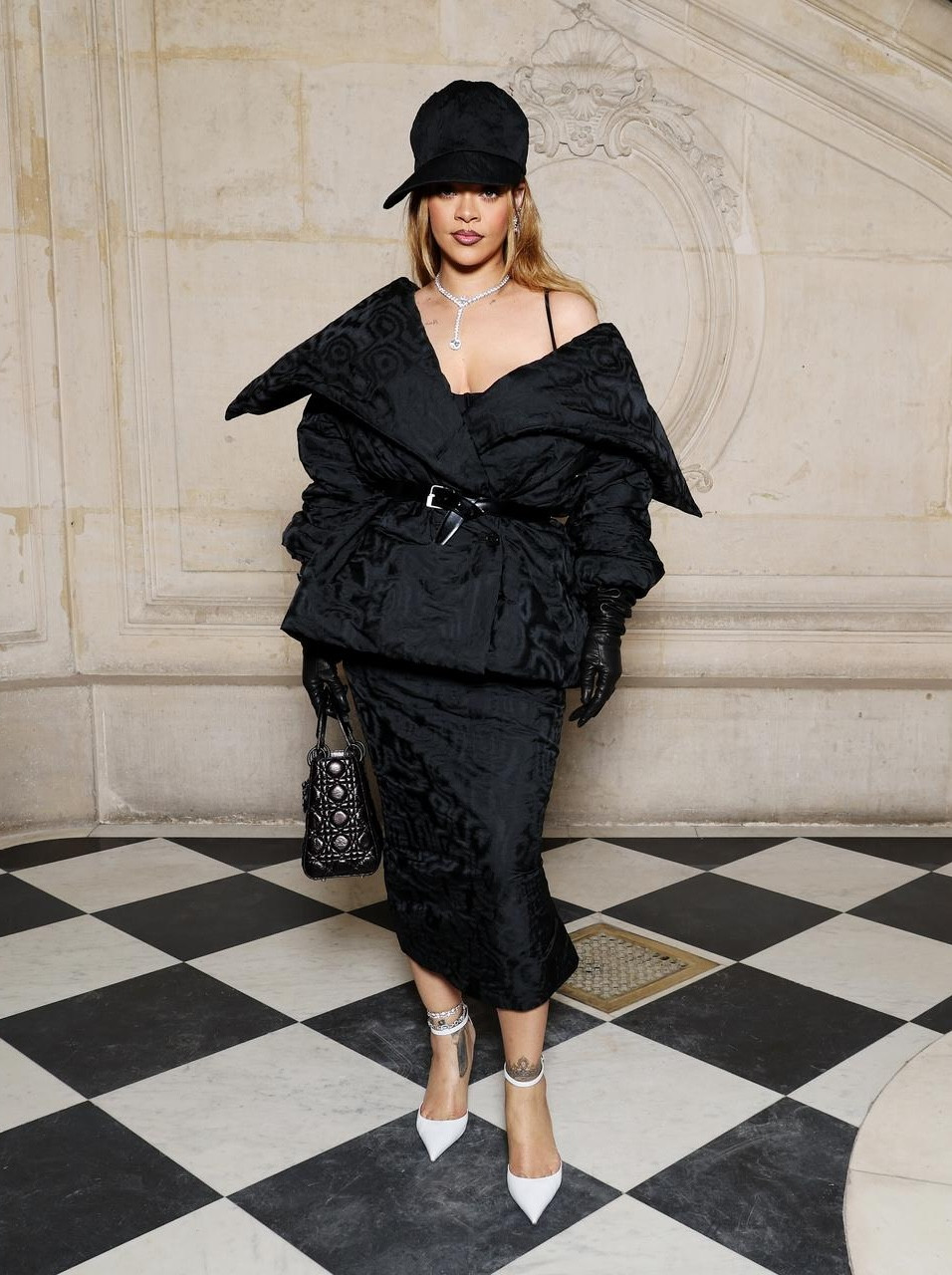 Сегодня архивные платья хранятся в музеях по всему миру. Но это вовсе не значит, что силуэт не продолжает жить. Напротив, последователи Диора часто использовали фасон в своих коллекциях. Мария Грация Кьюри очень активно цитировала основателя бренда, когда сама руководила французским Домом. В ее интерпретациях были и сами платья миди, и даже жакеты, повторяющие асимметричный вырез. Например, «скошенный» блейзер модели на весенне-летнем шоу 2025 года носили вместе с брюками, а Рианна на весенне-летнем показе Haute Couture и вовсе продемонстрировала дутый пуховик на одно плечо.