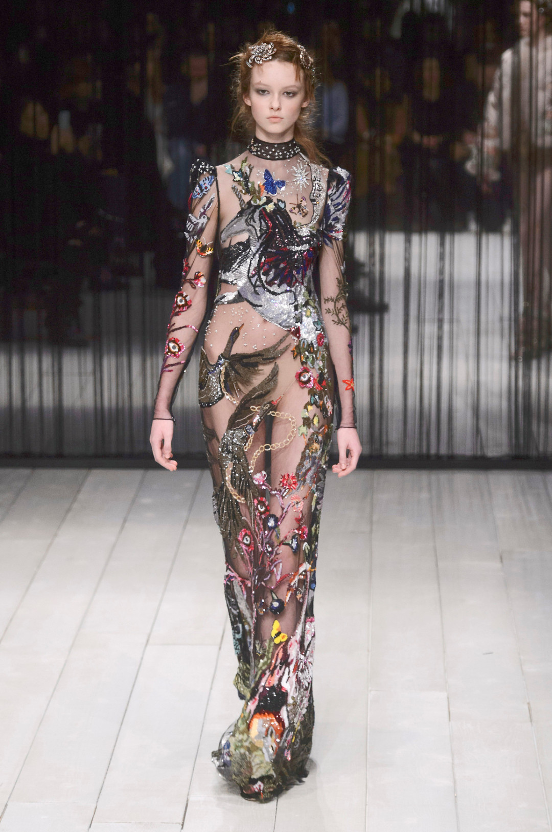 В 2010 году на плечи Сары Бертон легло тяжкое бремя. Как сохранить айдентику Дома, но при этом избежать сравнения с гением Маккуином? Это было очень сложно, практически невозможно. Дизайнер была его прямой «наследницей», ведь за 13 лет совместной работы с покойным модельером ей удалось очень хорошо понять его принципы, уловки, любимые приемы. Ее дебютная коллекция — весна-лето 2011 года — была, скорее, одой всему тому, что создал Ли при жизни: перья, аппликации бабочек, викторианские прически и «ангельские корсеты». Но Сара прекрасно понимала, чтобы оставить за собой место (и не позволить другому дизайнеру — незнакомому с Маккуином — продолжить его дело), необходимо прикладывать усилия.