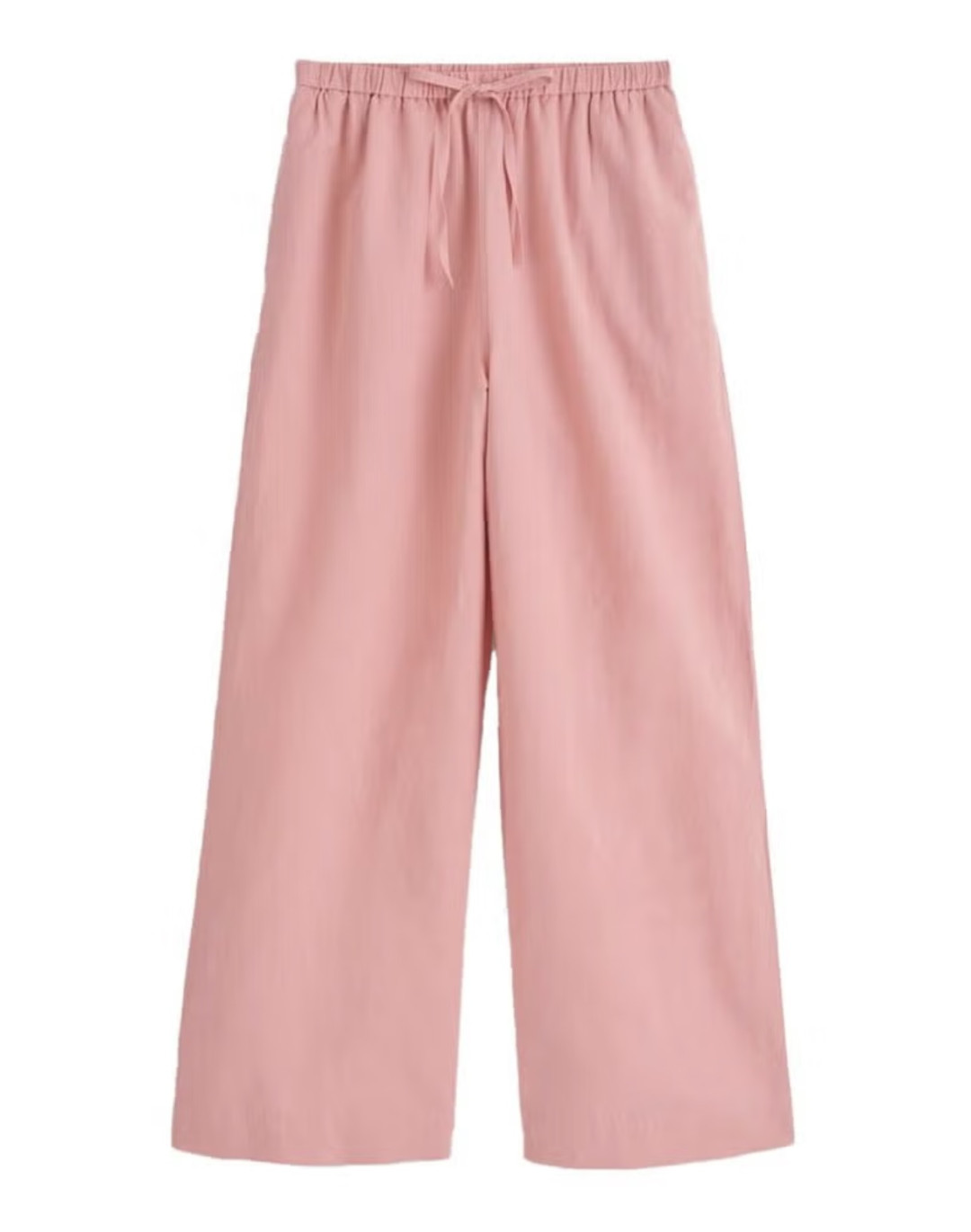 Безупречные образы с брюками из поплина сочетают в себе две важных модных константы: кокетливость и расслабленность. Оттенки розового подойдут практически всем без исключения. Дополнить футболку и штаны можно инфантильными украшениями, шлепками и сумкой из рафии, которая тоже считается must have любого летнего сезона.