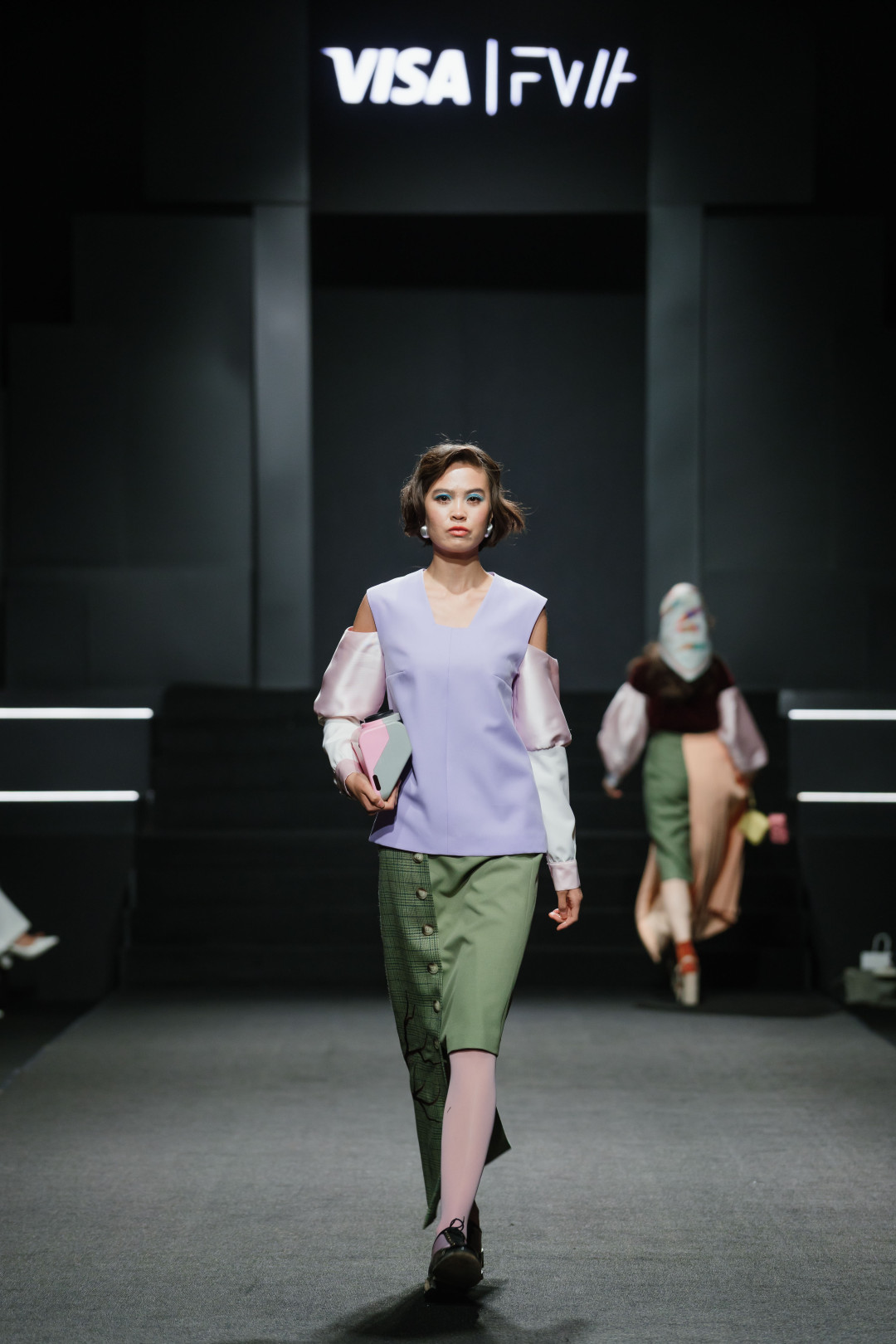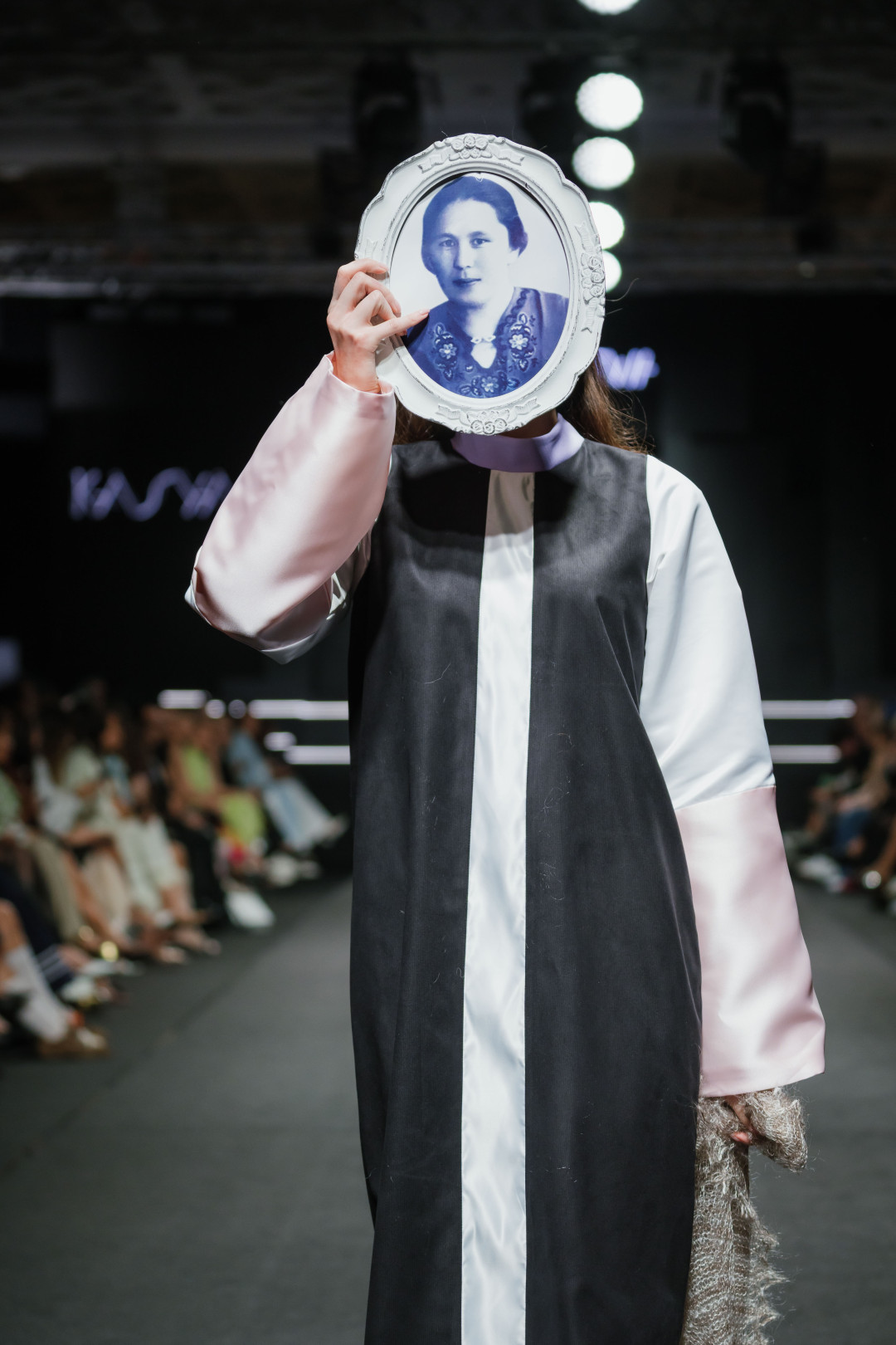 Финалистка конкурса Next Designer Award Empowered by Visa — дизайнер Карашаш Нурахмет — посвятила свою яркую, колоритную линию любимому городу. Дроп под названием «Два лица Алматы» показал, что прошлое и будущее южной столицы идут рука об руку. Традиции и современность объединились воедино, как тренды и неоромантика. К примеру, нежные ретро-силуэты представлены на подиуме в пастельных оттенках, которые пользуются популярностью в этом и следующем сезонах. Аутфиты расположились где-то между уютной ностальгией и урбанистической свободой. А структурные платья, расклешенные брюки, блузы с рюшами и деконструктивными рукавами понравятся тем, кто и в себе принимает эту двойственность.