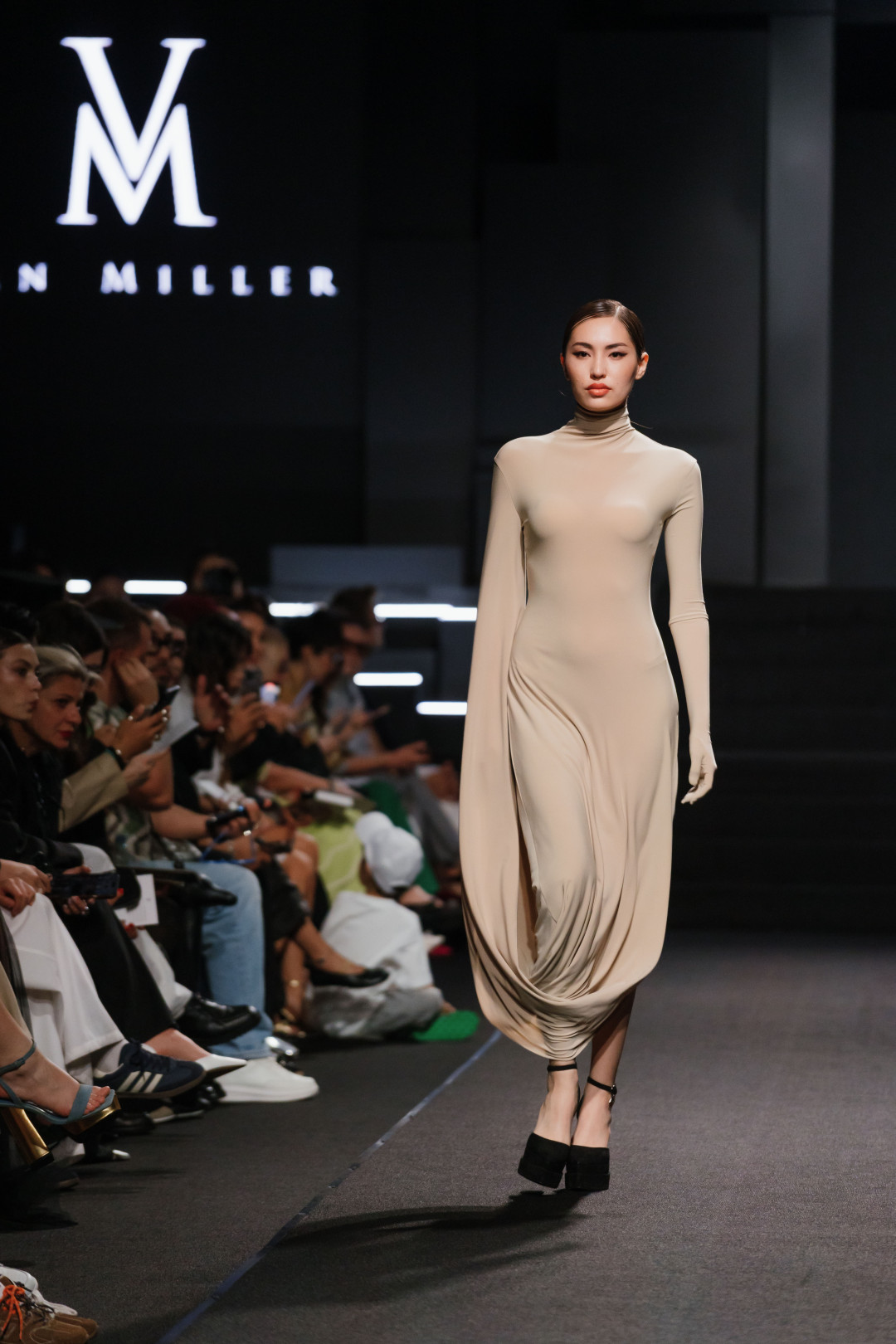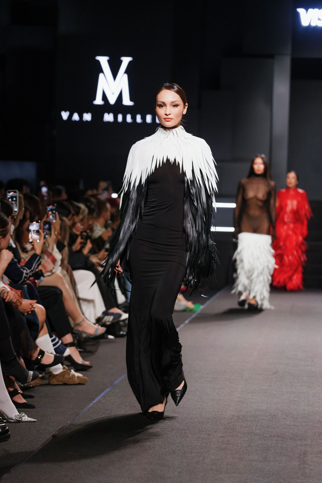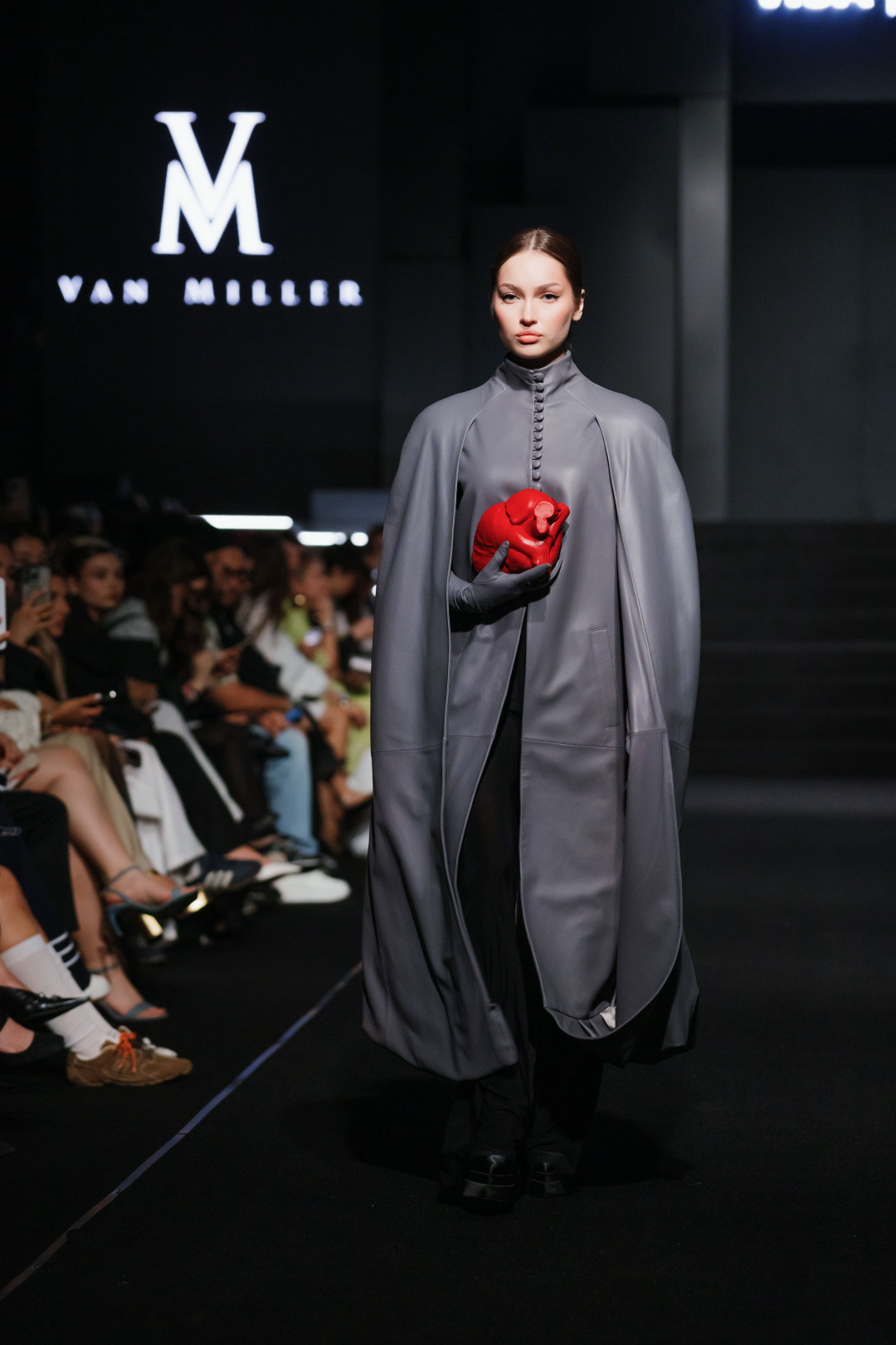 Коллекция «Слушай свое сердце» стала отображением внутреннего мира, в котором крайности и противоположности переплетаются воедино. Рациональность и эмоции, логика и чувства, мужское и женское начало гармонично уживаются в образах Van Miller. Двойственность настолько органично вписывается в айдентику марки, что нам уже трудно понять, где заканчиваются наши желания, и начинается шоу. Клатчи в виде сердца, кожаные перья, архитектурные фасоны и неожиданные ауфиты (к примеру, топ-балеро) сменялись «текучими» тканями, которые символизировали пульс. Сдержанная палитра оттенков была компенсирована разнообразием текстур. Кстати, на показе появилось платье с рукавом, который плавно переходит в подол. Этот силуэт уже стал трендом в нынешнем сезоне Visa Fashion Week Almaty.