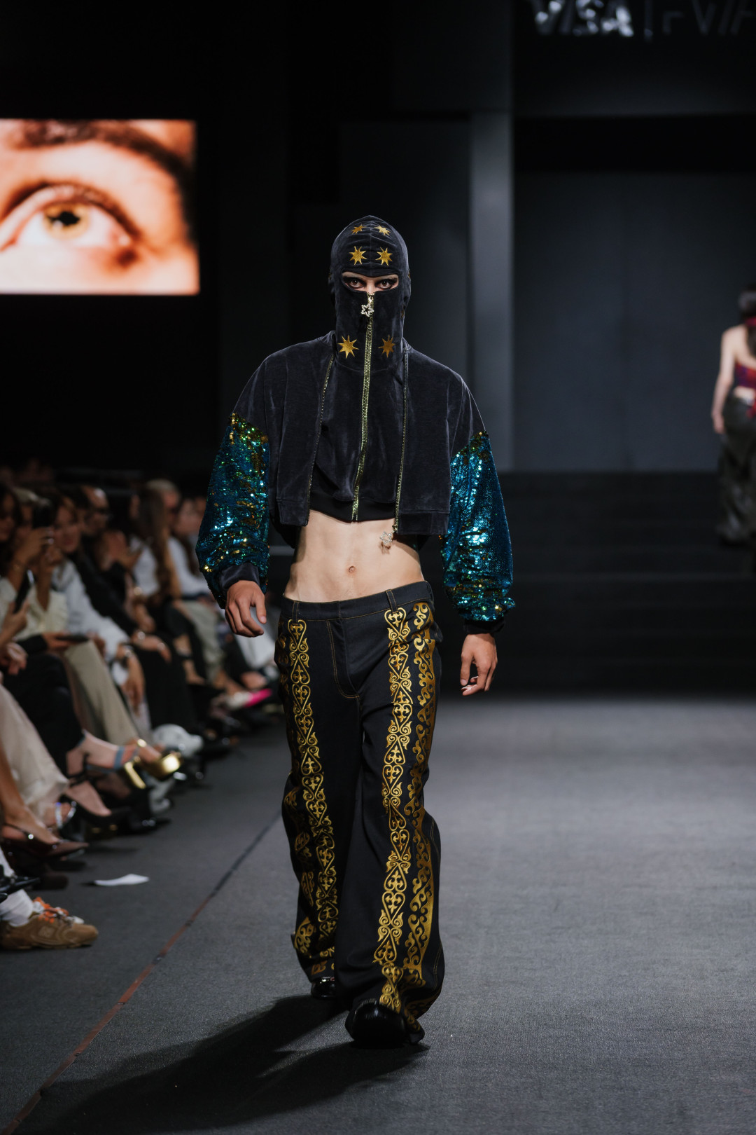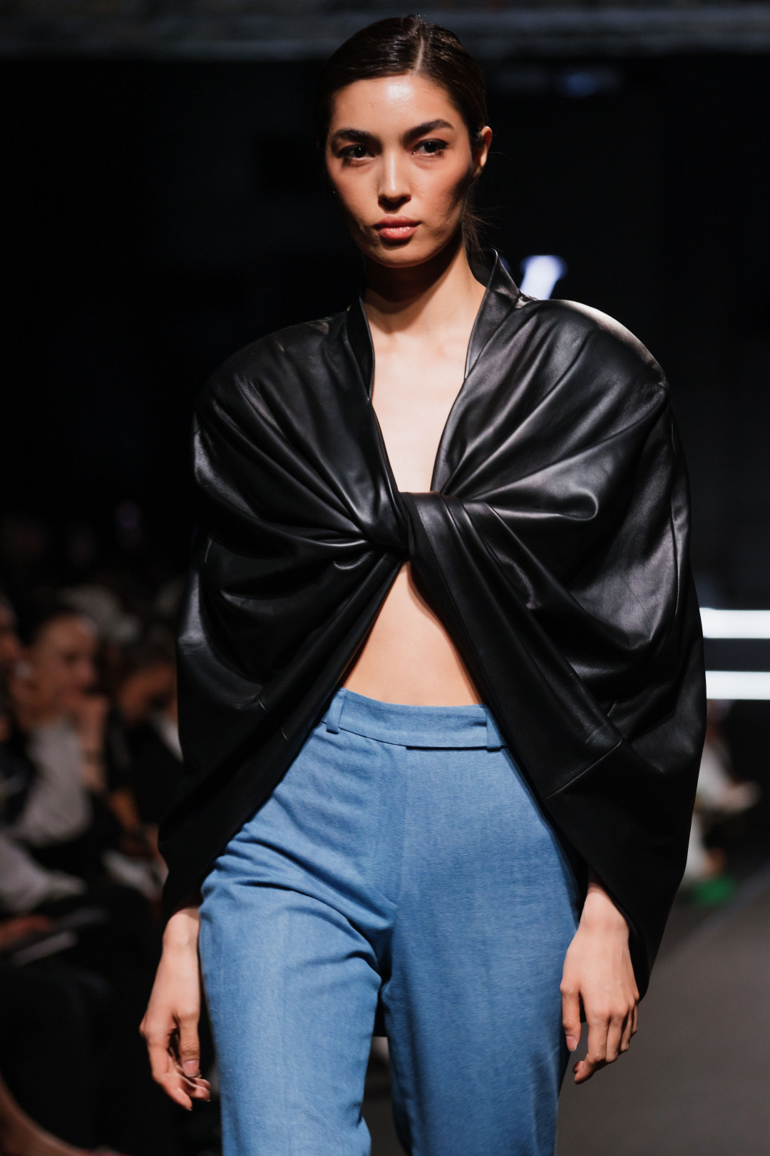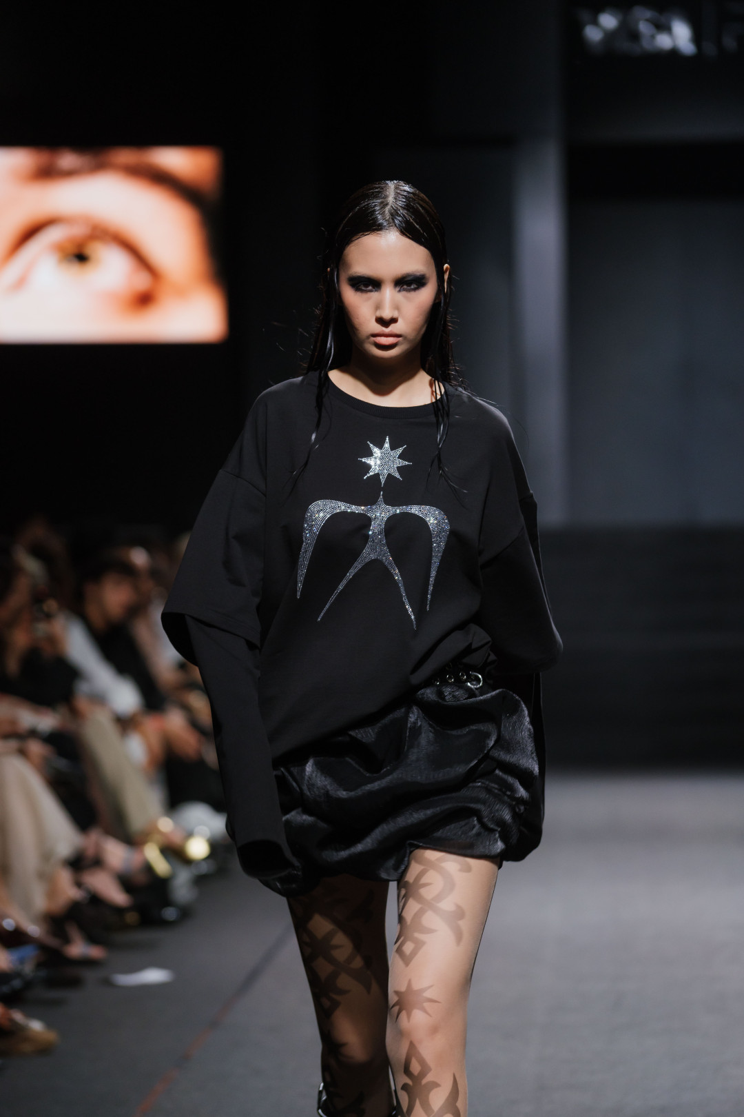 Еще одним почитателем родины стал бренд Kimmin. Но марка выбрала дерзкий гранжевый стиль, который был даже слегка агрессивным во время шоу. Команда уделила особое внимание (в очередной раз) своим корням, традициям и наследию, но пропустила их через призму смелости, воинственности и непокорности. С одной стороны линия Made In Kazakhstan обращается к локальным орнаментам, которые украшают брюки, топы и вельветовые куртки. С другой она показывает, что идентичность может быть какой угодно, главное, чтобы она отражала внутреннее свечение. Даже если все это могут выделить балаклавы, кружево, рваные силуэты и транспарантность.