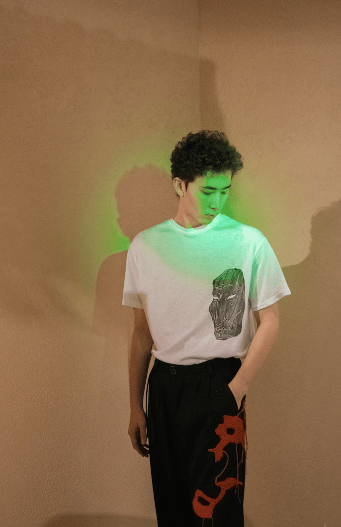 В капсулу 36.63 х Howe, посвященную тактильным ощущениям и самовыражению через искусство и одежду, войдут эклектичные рубашки, футболки, брюки и свитеры с красно-белыми нашивками и черно-белыми принтами, разработанными лично Аружан.