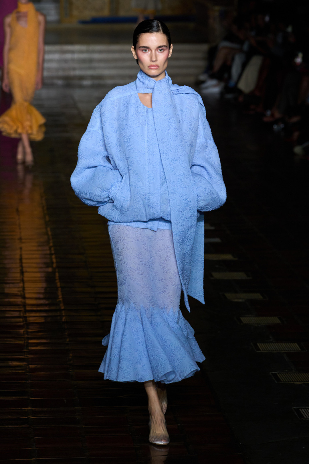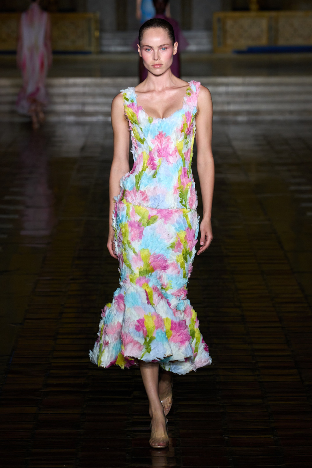 Прабал Гурунг нашел свое место силы в церкви Святого Варфоломея. Именно сюда он пригласил гостей шоу. Силуэты ангелов стали для него источником вдохновения. Неудивительно, что большинство платьев, плащей и юбок имеют фасон «русалки», расширяясь книзу. Его «херувимы» получились очень женственными и многогранными. Бюстье и комбинезоны (кажется, этот предмет гардероба все-таки закрепился в мире фэшн) превратились в баллоны, в то время как другие сексапильные образы «обросли» аппликациями и акварельными потеками. Весенне-летняя Неделя моды в Нью-Йорке 2026 года, и Prabal Gurung в частности, помогают Востоку и Западу объединяться в оригинальном формате.