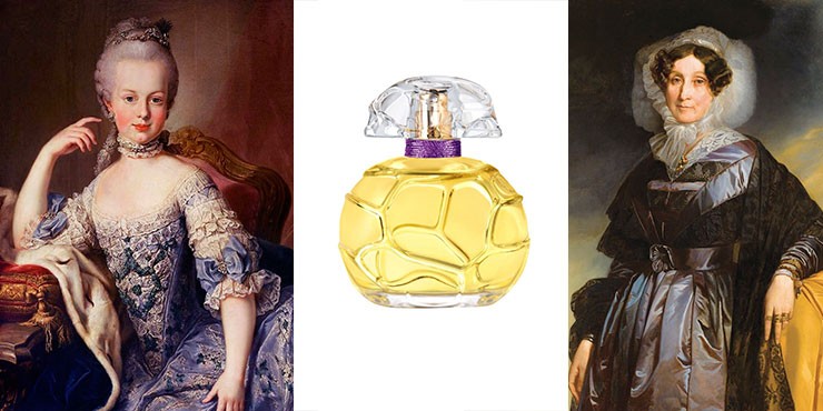 Слева направо: Мария-Антуанетта; аромат Houbigant Quelques Fleurs Royale Extrait; принцесса Аделаида Орлеанская.