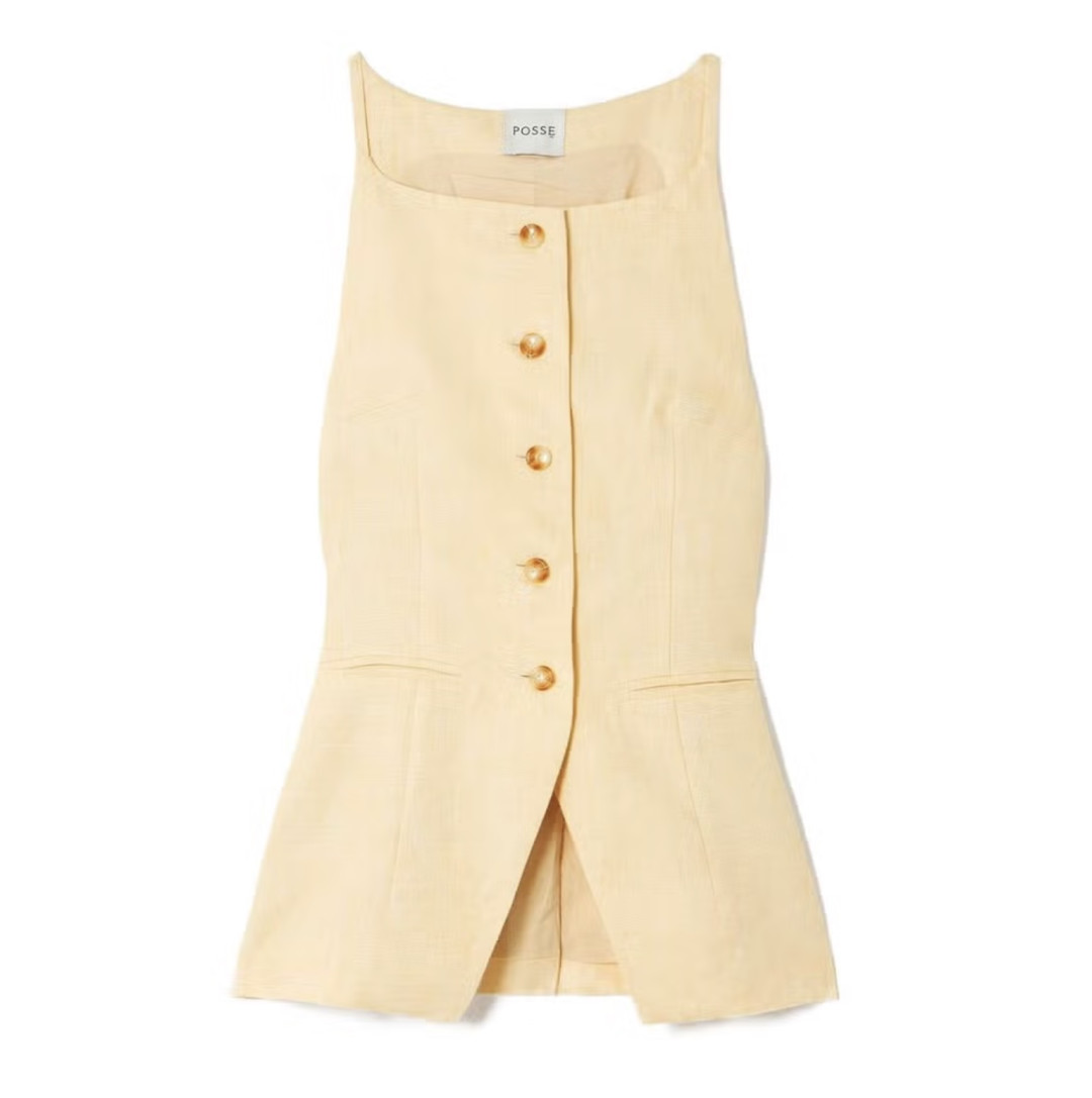 Собираем в наряде все главные тренды сезона — приталенный жилет, удлиненные бермуды, украшения в морской тематике и сумку из рафии. Получается отличный «лук», который, если сменить аксессуары, вполне может превратиться в рабочий.