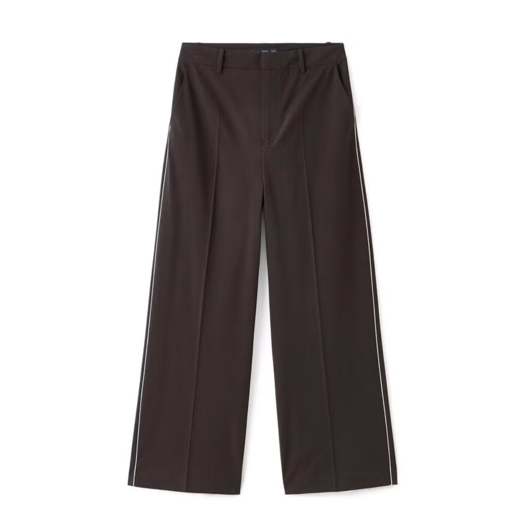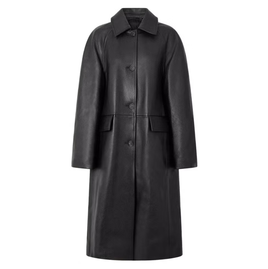 Концептуальный наряд мог бы появиться на показе Prada: сочетание строгих силуэтов и расслабленных фактур очень в стиле Миуччи Прада. Кожаные предметы гардероба добавляют текстуры, а рубашка и свитер компенсируют жесткость и лаконичность.