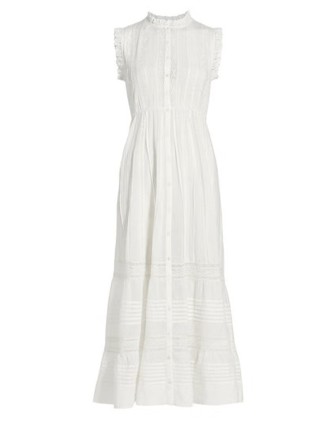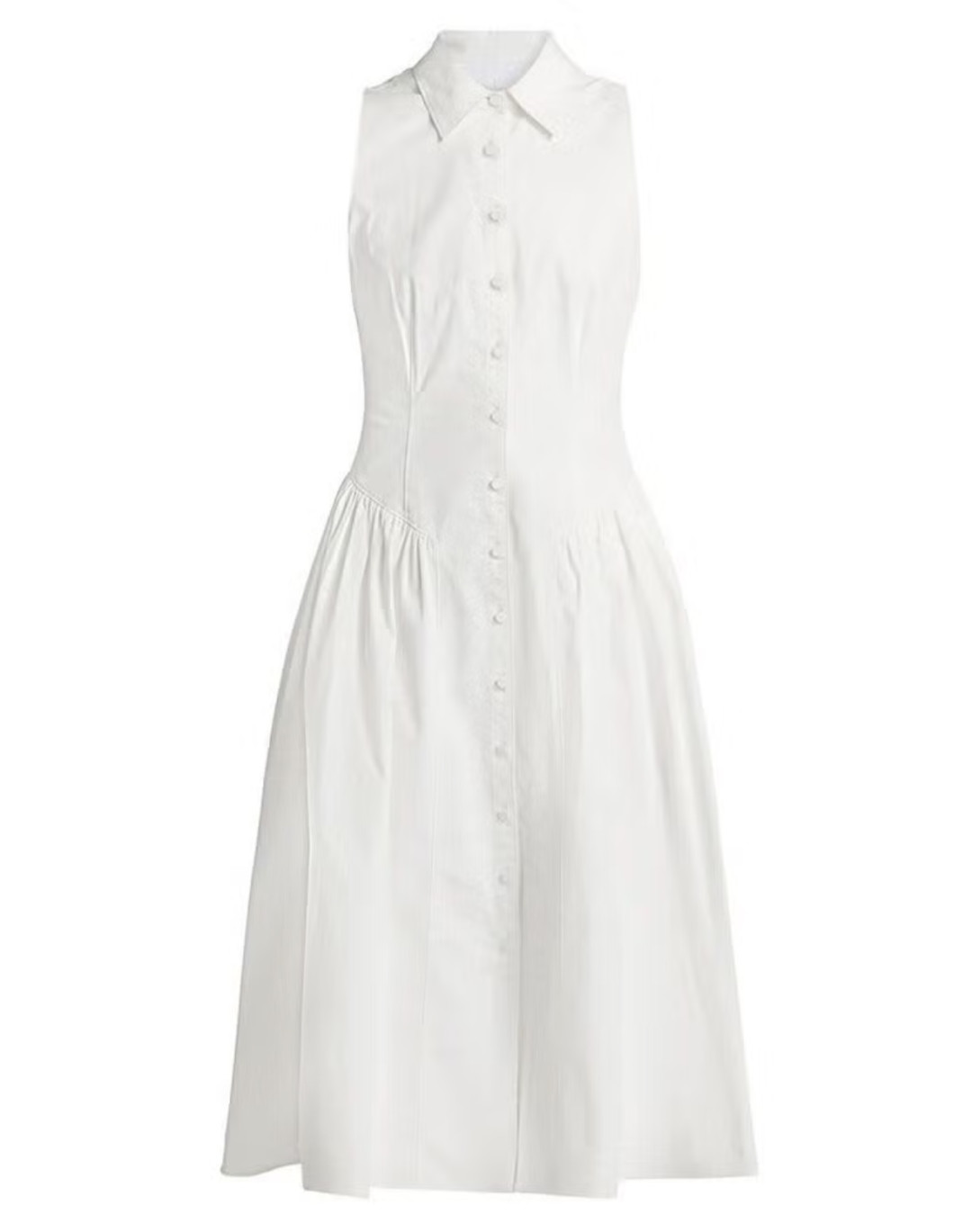 Еще один вариант с легким летним платьем. Белый наряд с воротником очень любят носить аристократки. Завершить его можно эффектными мюлями и сдержанными дизайнерскими аксессуарами. Не забудьте про красную помаду. Она будет еще одним уместным акцентом.