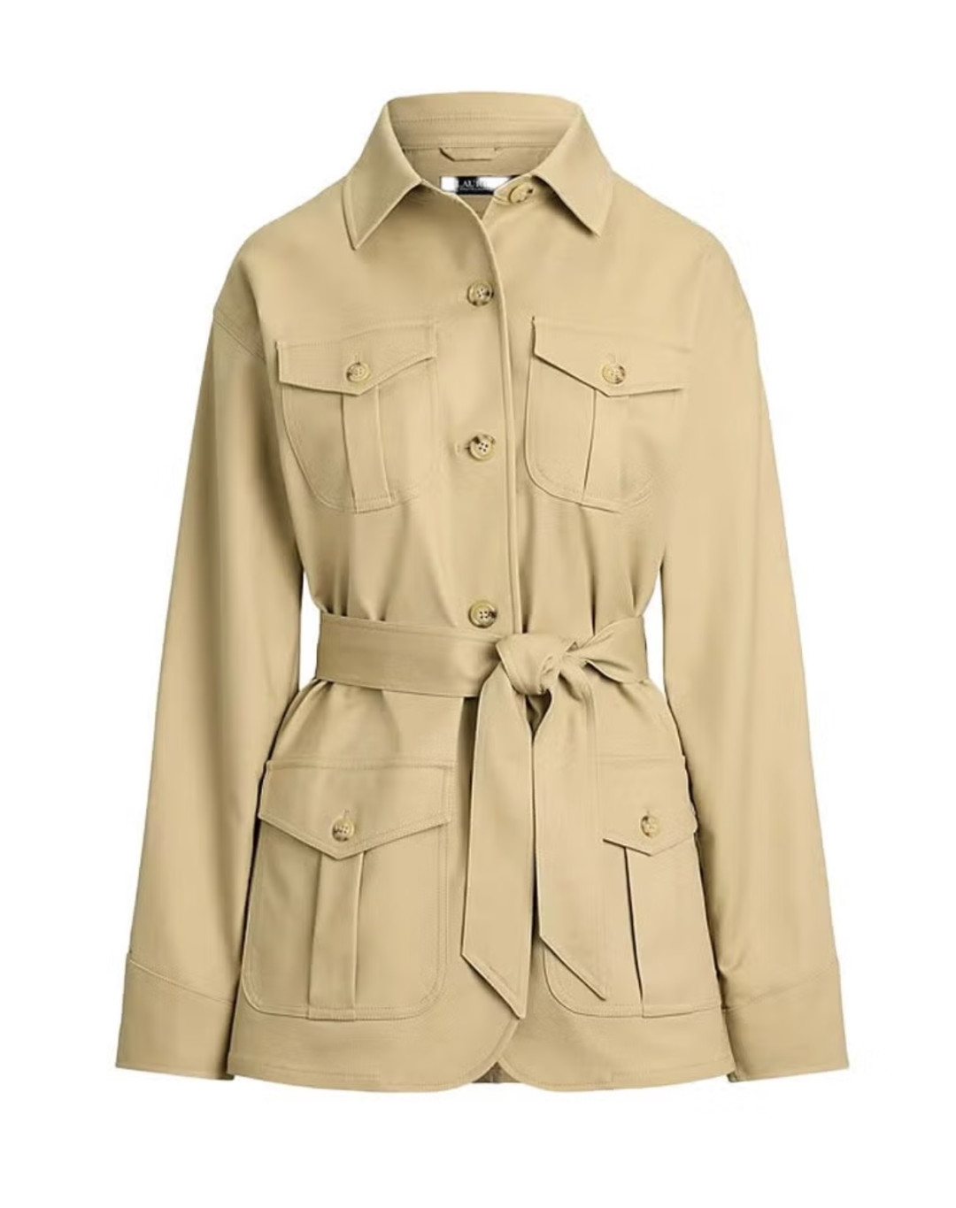 Прохладные летние дни лучше встречать в полной готовности. Трикотажный топ и широкие брюки завершите рубашкой в стиле сафари песочного оттенка. Она придаст наряду строгости и практичности, а еще непринужденной утилитарности.