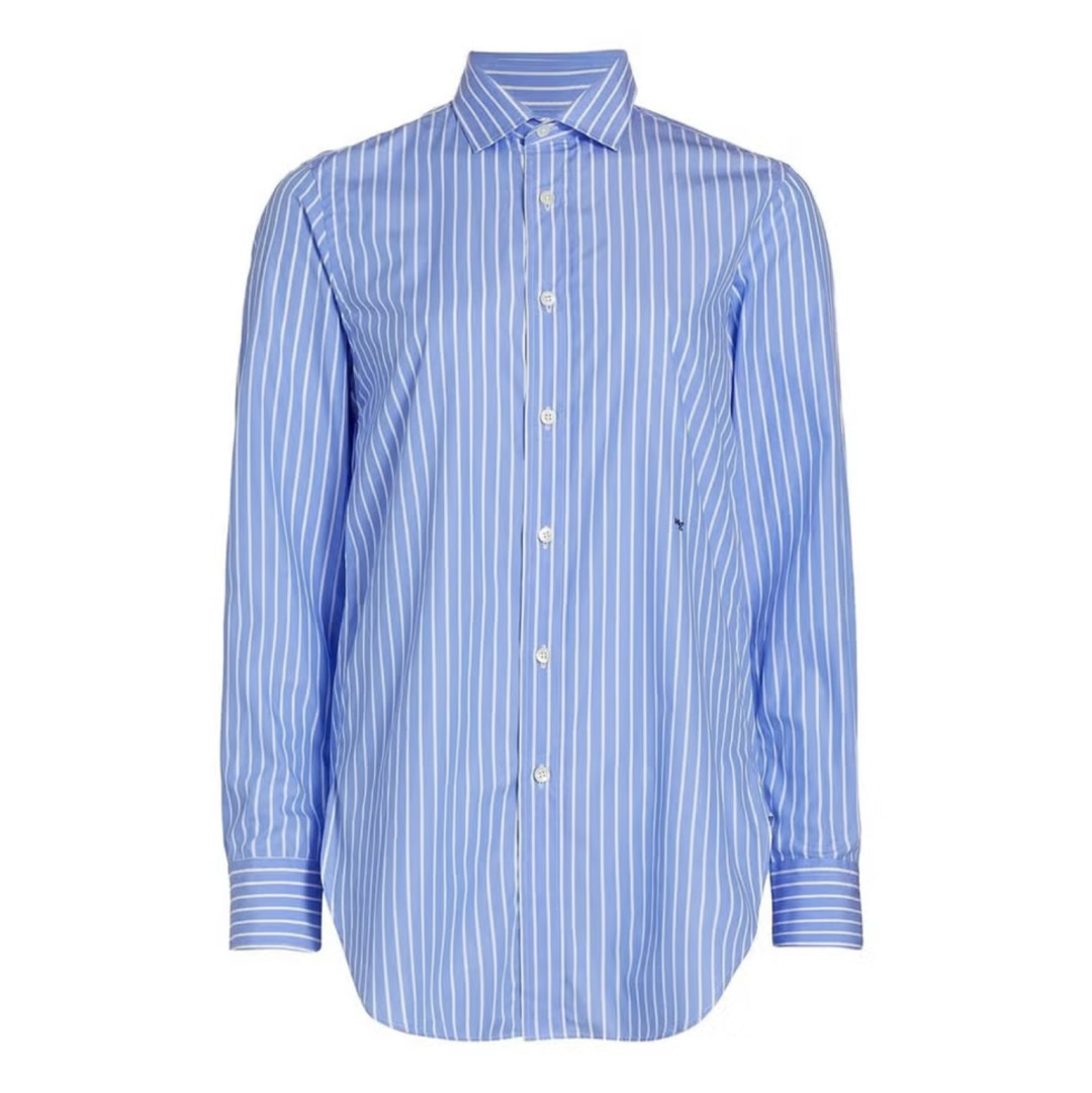 Этот наряд — отличный пример того, как обувь и аксессуары могут сделать даже самый сдержанный «лук» расслабленным и непринужденным. Рубашка и прямые брюки в компании необычного пояса, вьетнамок и разноцветного шопера уже не станут выглядеть так лаконично.