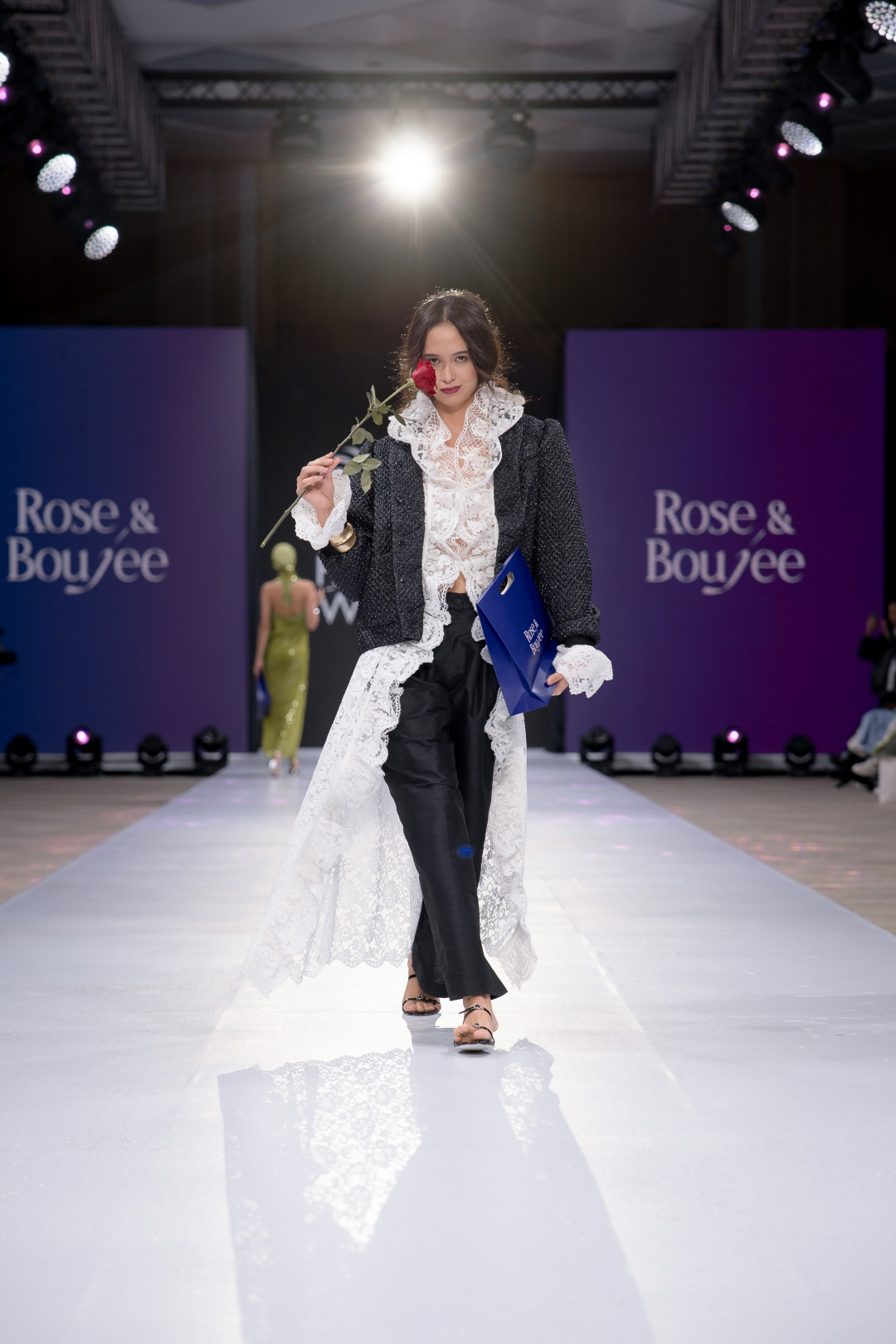 Основательница молодого алматинского бренда Дайана Аргимбаева посвятила коллекцию своему любимому городу, а также женщинам и хорошему настроению. Яркие, кокетливые аутфиты Rose & Boujee в сочных оттенках понравятся всем поклонницам барбикора и неоромантики. Пушистые платья оттенка маршмэллоу сменяются на подиуме воздушными комбинациями в стиле 1920-х, лаконичным костюмом сапфирового цвета и транспарантными юбками, декорированными пайетками. Флористические мотивы прекрасно чередуются с длинной романтичной блузой из кружева. Кстати, последняя составляет смелый акцент наряда, который вполне могли бы носить поэты.