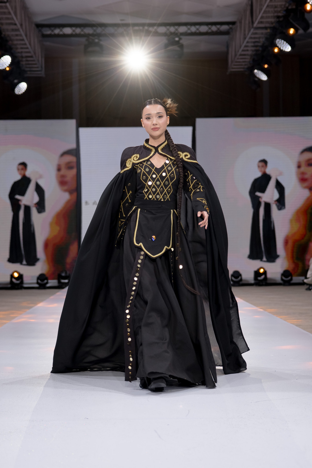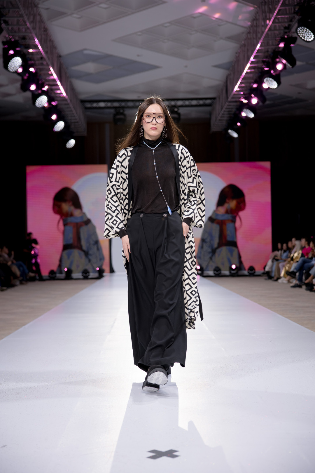 Марка Bayan Sabazova помогает традиционным элементам гардероба обрести современное звучание. Бренд, вдохновленный наследием Казахстана и тюркского мира, соединяет актуальные силуэты и фасоны с национальными мотивами. Так, узнаваемые узоры «оседают» на свободных чапанах, накидках с длинными рукавами, асимметричных юбках и жакетах, которые продолжаются юбками в пол. Мужские аутфиты — это дань уважения кочевникам и воинам прошлого, а женские — воспевают красоту традиций. Дизайнер и основательница лейбла Баян Сабазова взяла за основу сдержанную черно-белую палитру, но разбавила ее яркими оттенками и ручной вышивкой.