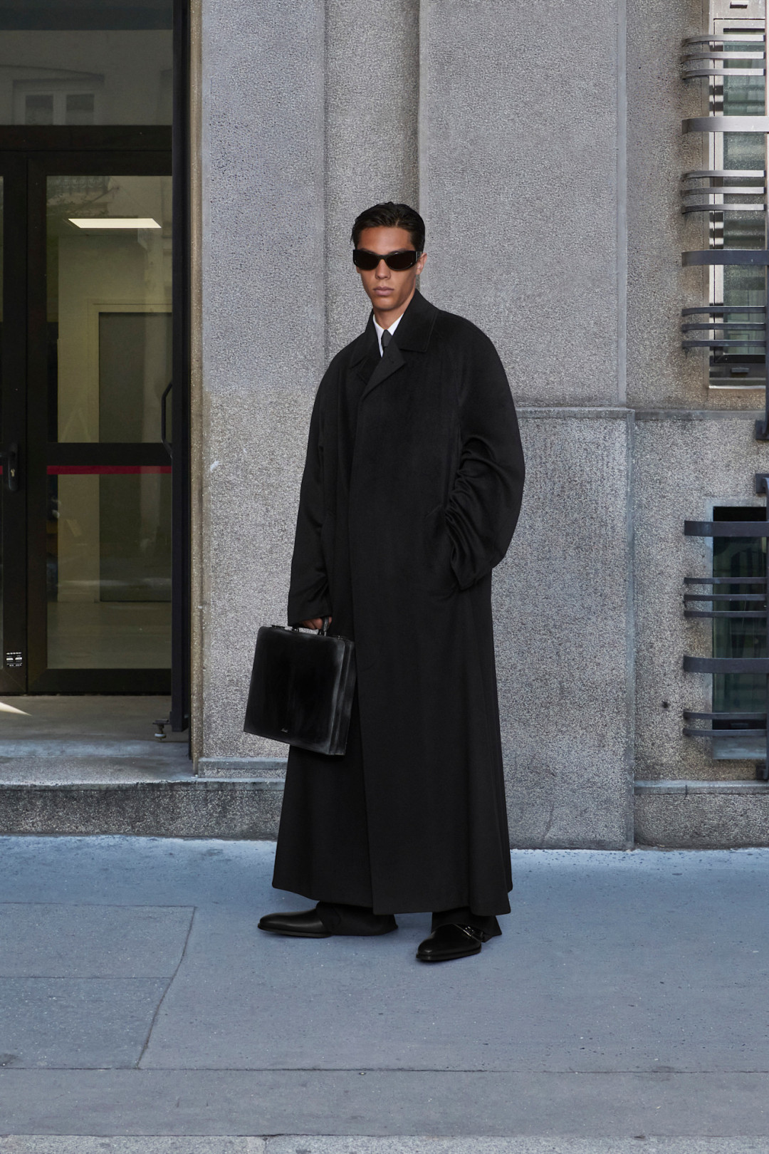 Бенефис Демны прошел очень громко. Многие ждали, что напоследок дизайнер покажет все, что он разработал для Дома за последние годы. Но у него были свои планы. Помимо платьев с гигантскими воротниками (или, наоборот, удушающими), массивных костюмов не по размеру и бесформенных пальто, на дефиле появились женственные наряды с подчеркнутой талией, интересные плащи с гиперболизированными рукавами и сексуальные комбинации. Друзья модельера — Сунньи Меллес, Изабель Юппер и Ким Кардашьян — участвовали в показе, а остальные амбассадоры пришли его поддержать.