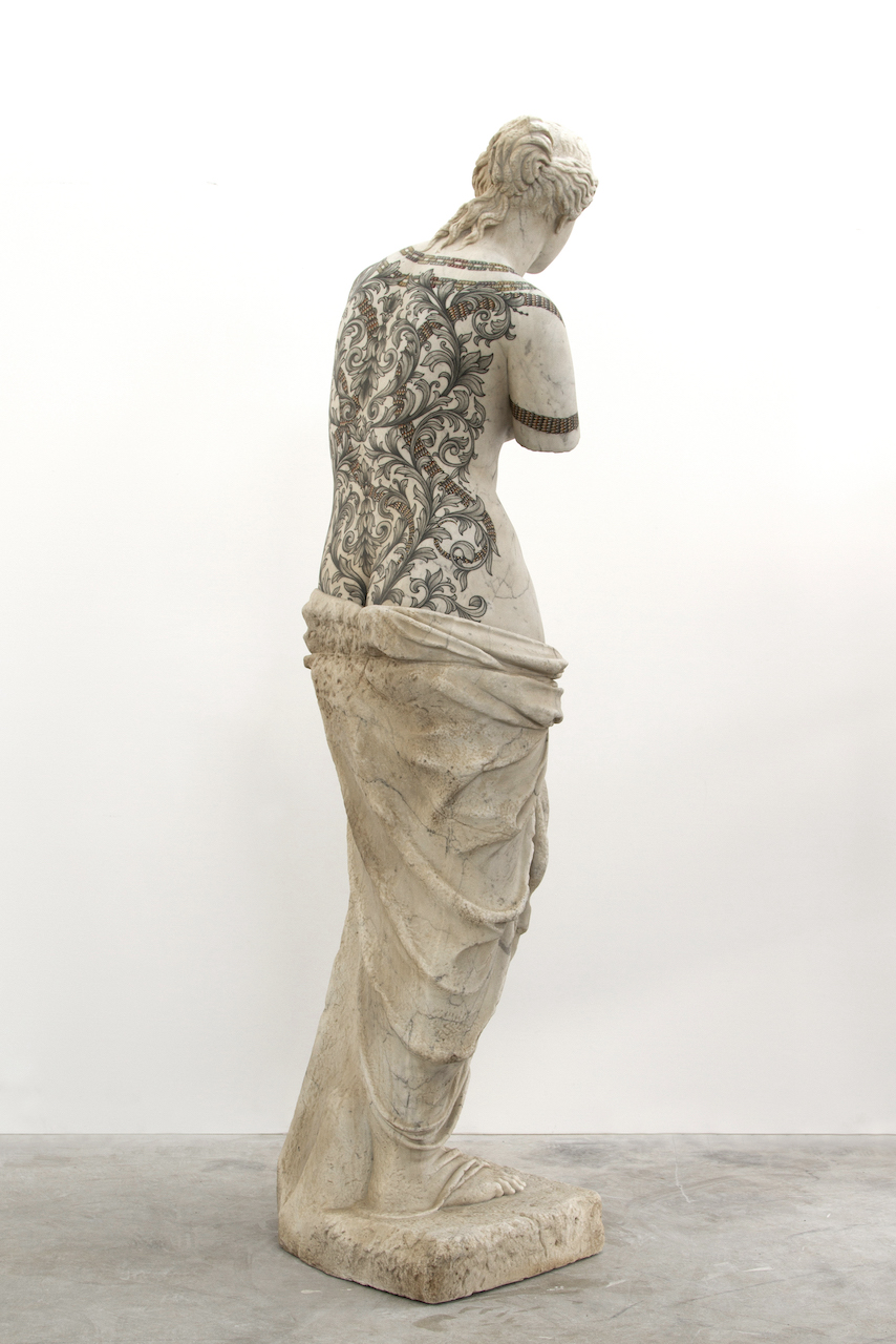 Особую связь Bvlgari с эпохой классики передает не совсем обычная «Венера Милосская» – она стоит напротив входа. В этой работе для нового бутика скульптор Фабио Виале, известный своими инновационными и необычными интерпретациями мрамора, исследует пересечение классического и современного искусств и, конечно же, мастерство ювелиров Bvlgari.