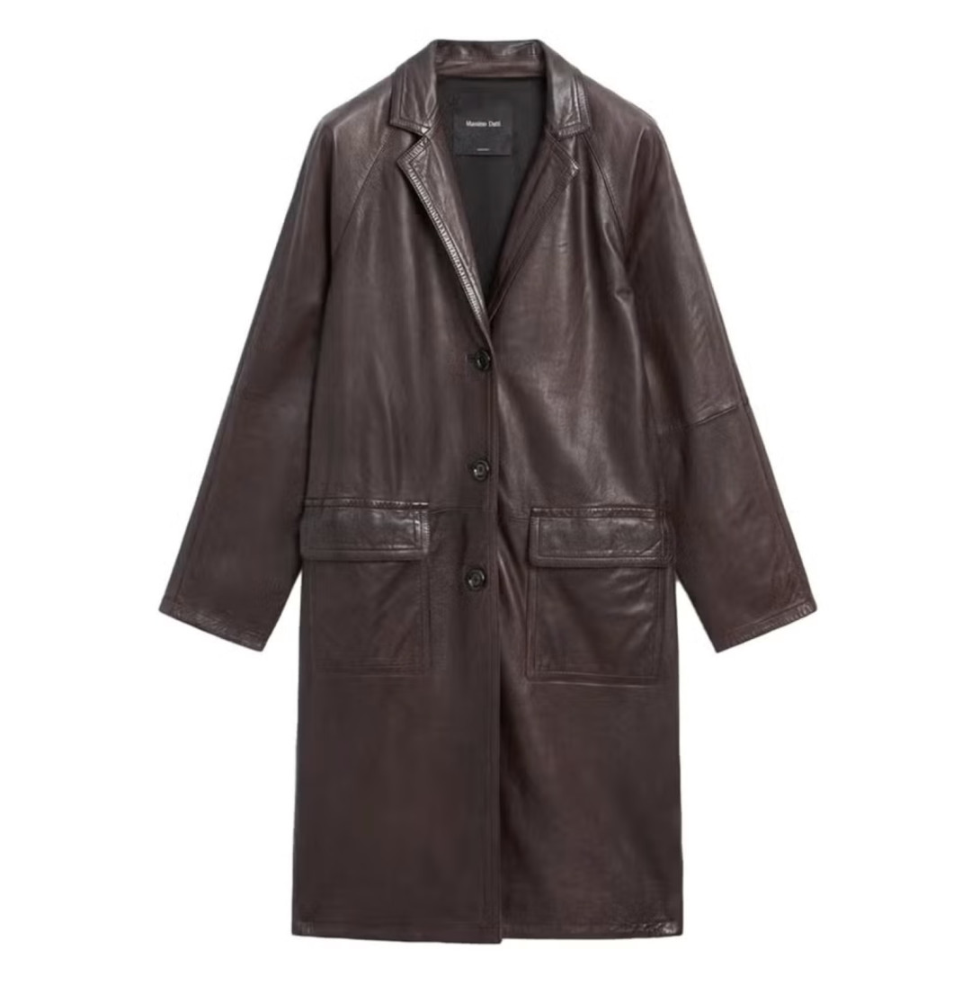 Все мы знаем, что противоположности притягиваются. Поэтому широкие джинсы с облегающими водолазкой и ботильонами смотрятся контрастно и эффектно. Завершить образ можно кожаным плащом и сумкой в тон.