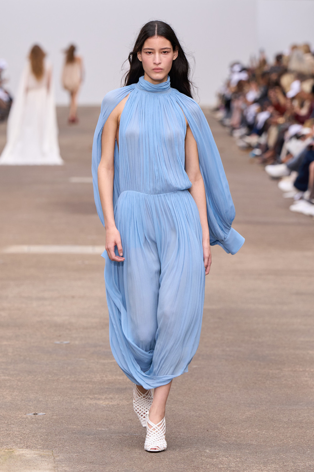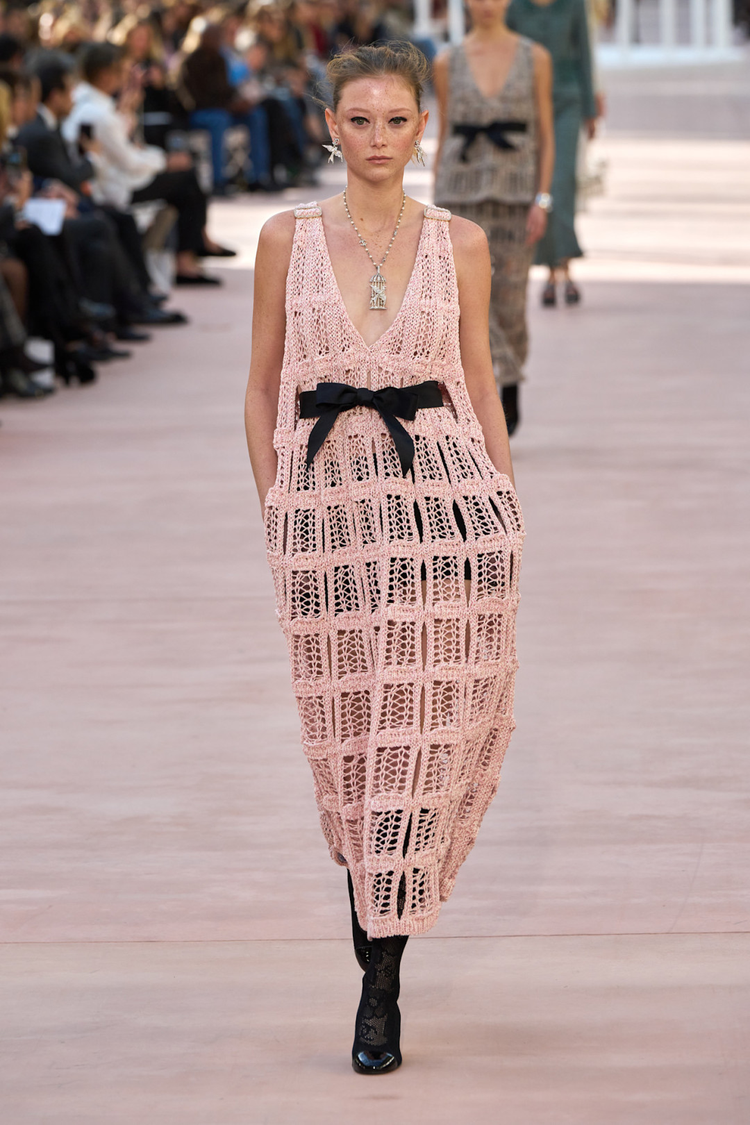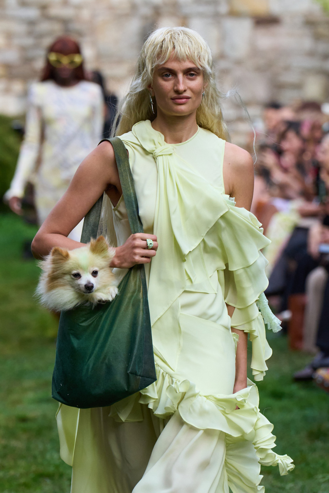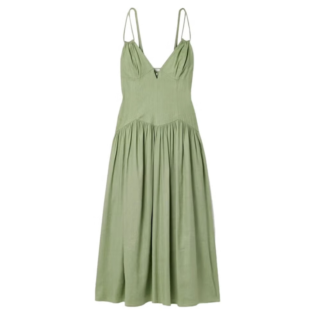 Фисташковый оттенок был выбран одним из лидеров не только из-за любви многих к дубайскому шоколаду. Красивый, нежный, романтичный цвет пробуждает аппетит и отлично подчеркивает кожу. Насыщенный зеленый теперь сменился своей более кокетливой интерпретацией.
