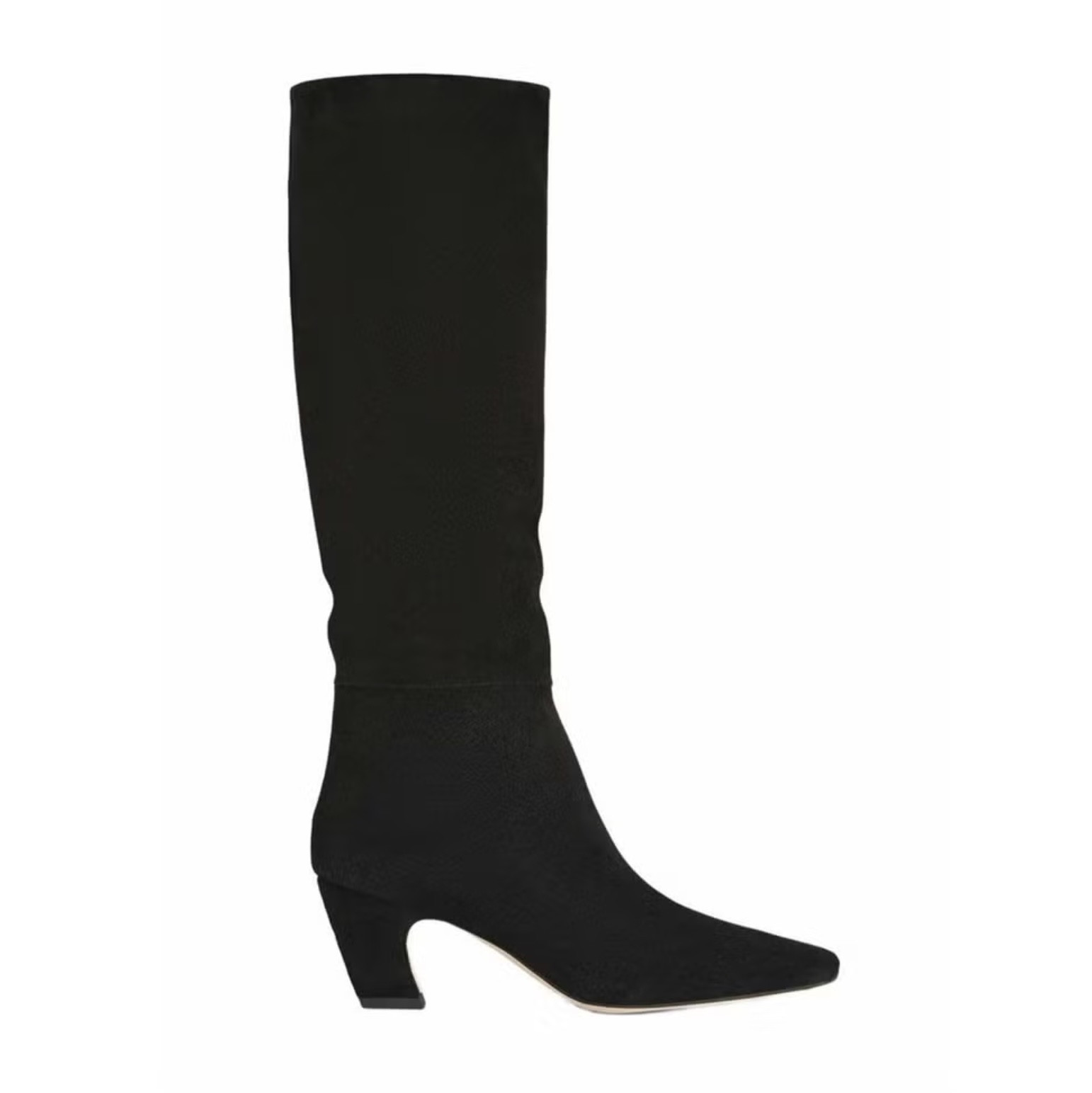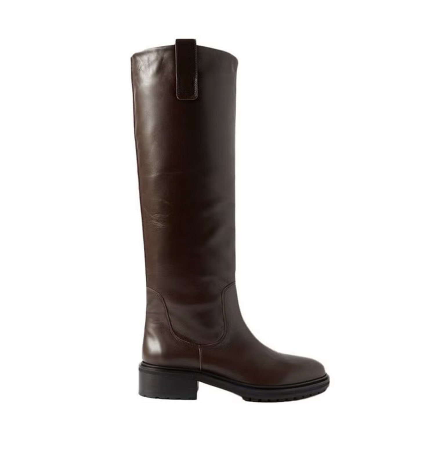 Модели из кожи и замши на небольшом каблуке или плоской подошве хорошо сочетаются с любыми аутфитами: от повседневных до офисных. К слову, сапоги до колена, собранные в нашей подборке, подойдут обладательницам широких икр, которые тоже хотят носить удобную обувь.