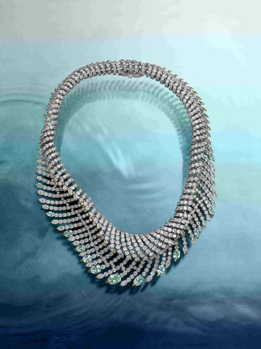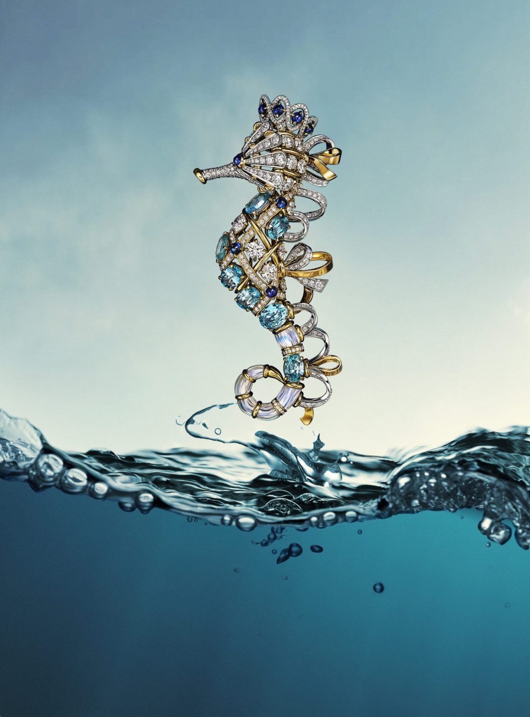 Новая коллекция Tiffany & Co. Blue Book 2025 разделена на шесть глав, каждая из которых посвящена тому или иному герою. К примеру, в дроп вошли ожерелья, напоминающие подводную траву, а также броши в виде морского конька (отсылка к изделию Жана Шлюмберже 1968 года) и черепахи. Не обошлось без метафорических изображений и других обитателей глубин (ежей и звезд), а еще зыбких и грозных волн. Линия Sea of Wonder помогает и нам погрузиться в таинственным мир, который теперь может стать ближе.