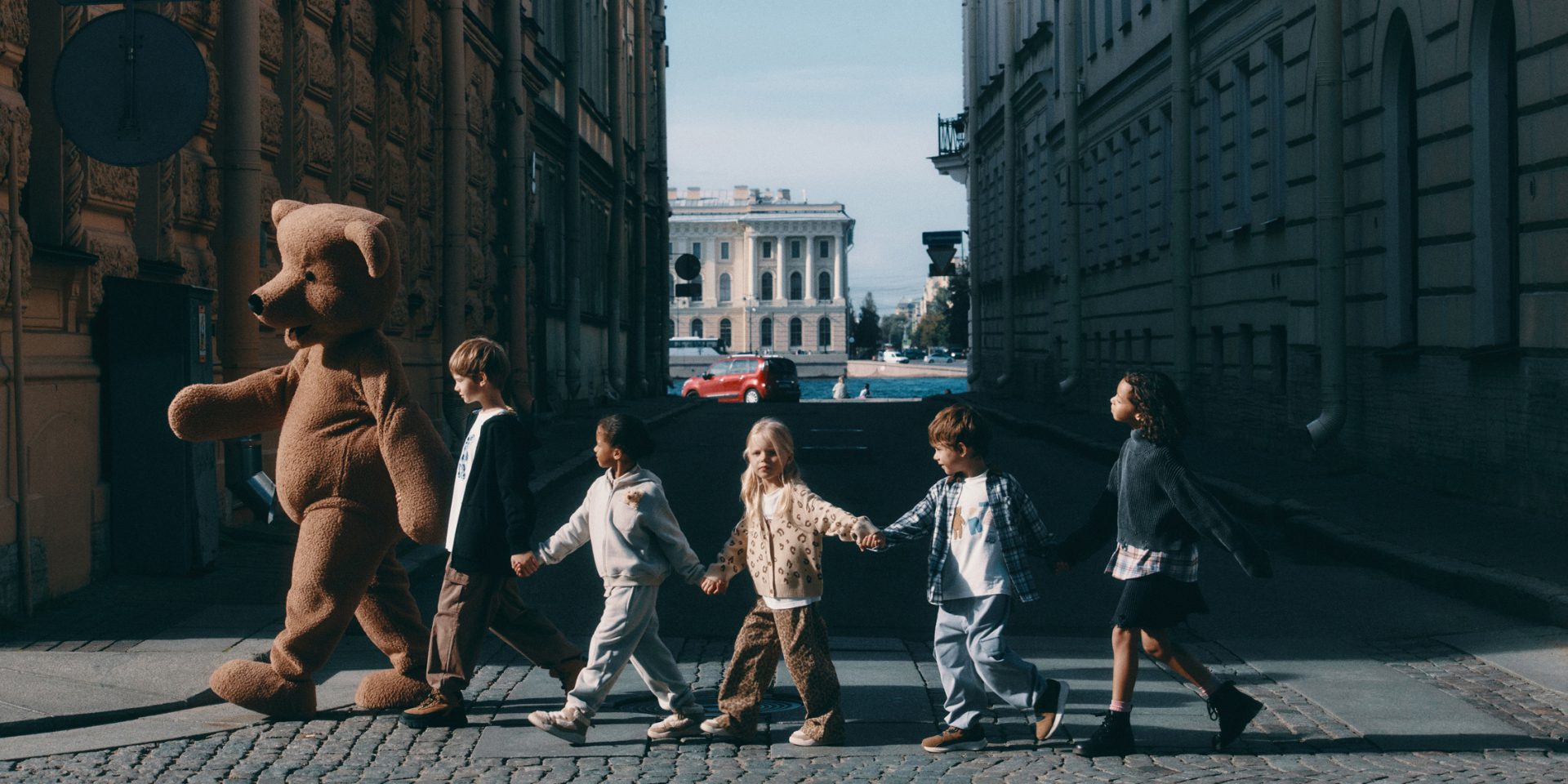 Юные герои кампейна линии собрались в библиотеке. Ребята носят образы базовых оттенков, которые всегда помогают составить практичный гардероб для школьных занятий. В коллекции доминируют белый, черный, синий, серый и бордовый оттенки, но иногда встречаются любимые детьми розовый и ярко-голубой.