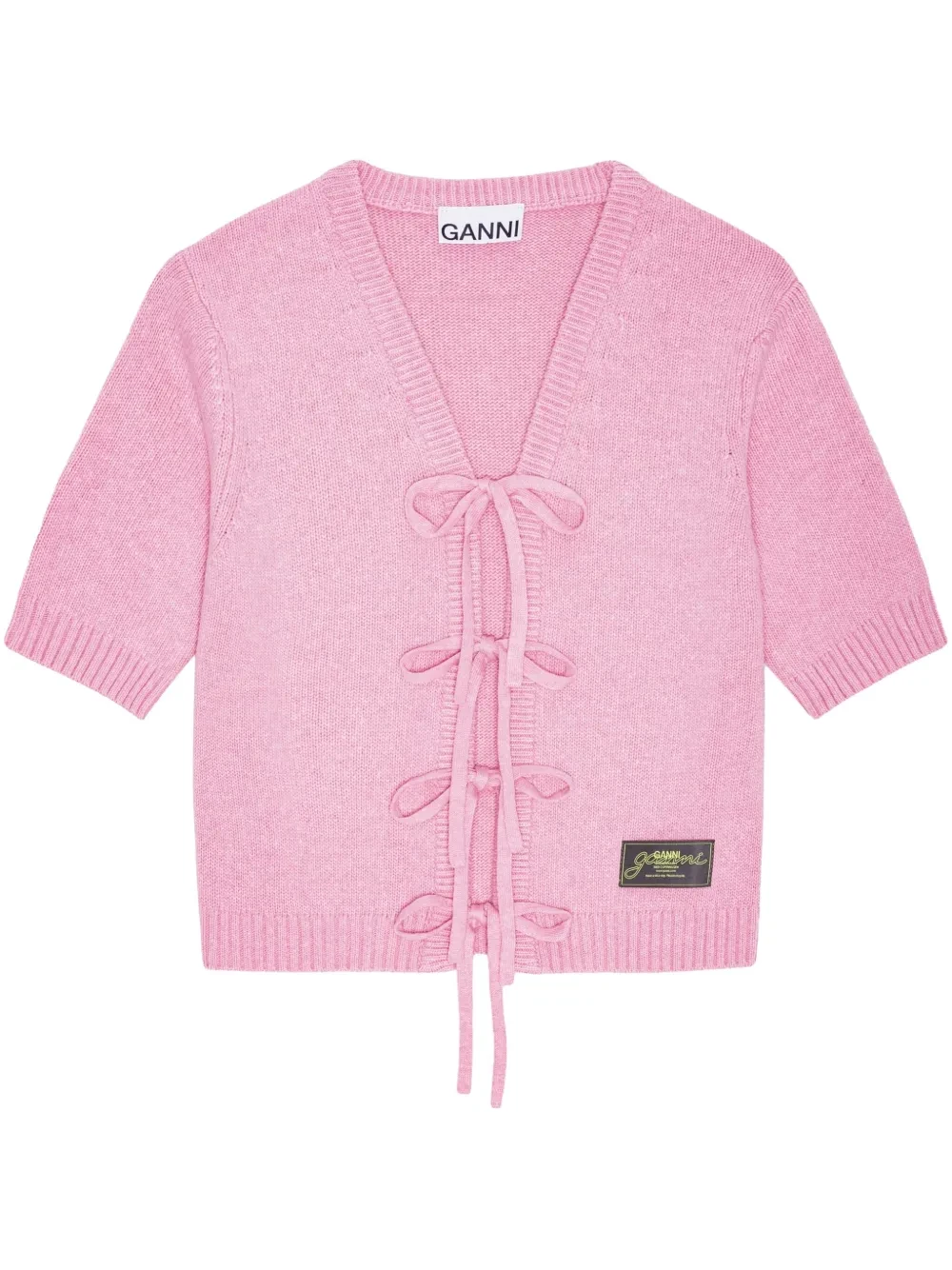 Кокетливая деталь аутфита — романтичный кардиган с короткими рукавами — дополнит игривое платье на тонких бретельках. Обязательно завершите его балетками и сумочкой с выразительным брелоком. Яркий и концептуальный «лук» готов.