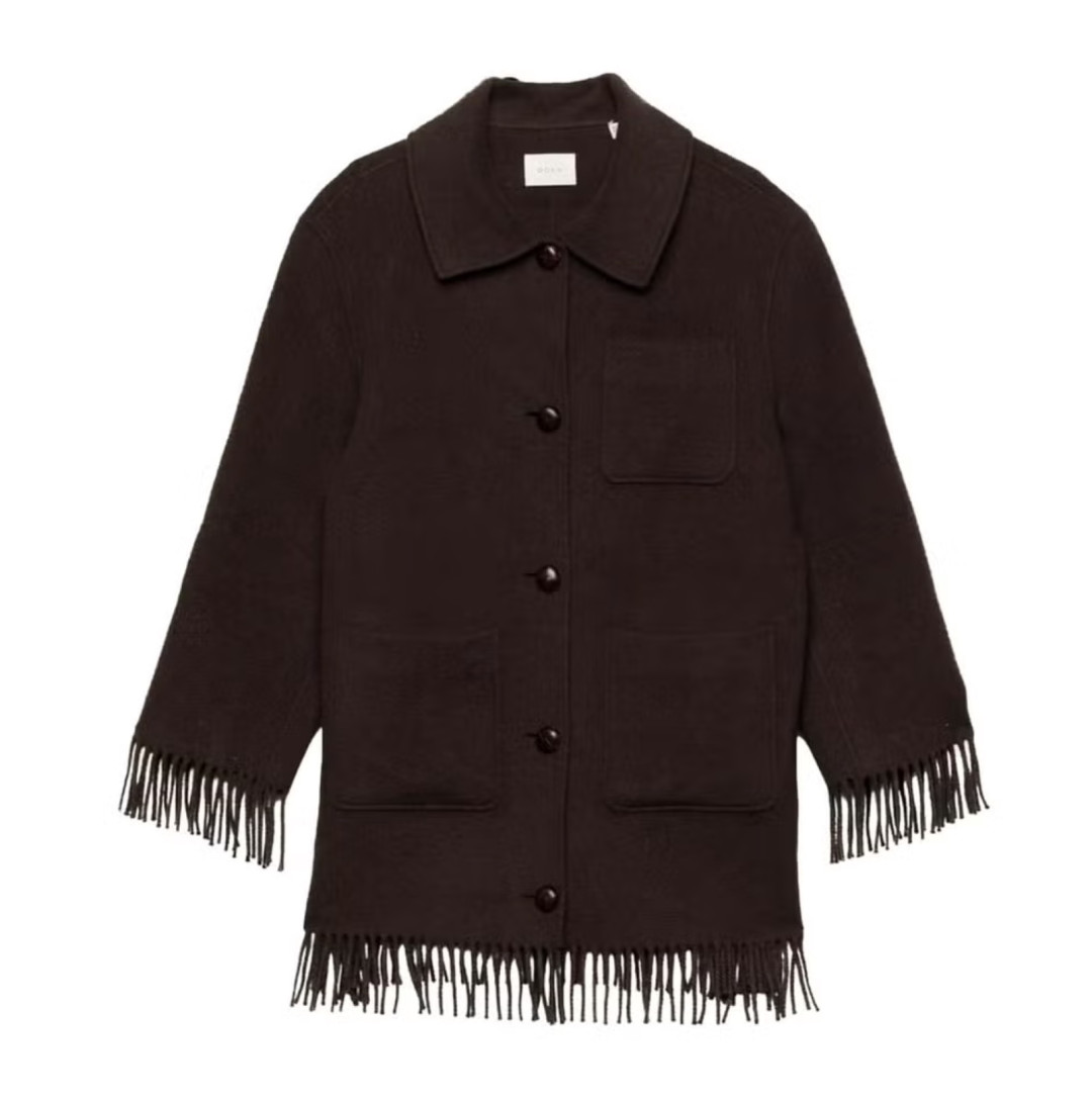 Шоколад түсті замша костюм — нағыз трансформер, әрдайым көмекке келеді. Жейде мен шалбарды бірге де, жеке де киюге болады. Дафлкот, күннен қорғайтын көзілдірік және кең сөмке бұл образға тек пайдалы қосымша болады.