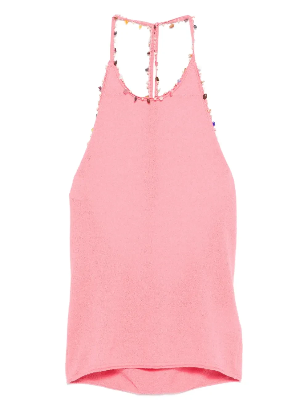 Разве может один предмет гардероба без особой стилизации выглядеть сексуально и чувственно? Отвечаем: может. Топы-халтер как раз в числе таких вещей. Их незамысловатые силуэты, перекинутые через шею, открывают плечи и спину, что моментально поднимает градусы образа. Даже если вы носите подобные изделия с джинсами или шелковыми юбками, то наряды не выглядят скучно, напротив, без особых усилий они смотрятся эффектно и элегантно. Яркий верх на завязках берите с собой в отпуск и носите на пляже, а лаконичный, сдержанный вариант больше подойдет для офиса, ресторанов или деловых встреч. Кружевные топы-халтер понравятся самым смелым, а замысловатые (как, к примеру, у Coperni) — тем, кто собирается впечатлять окружающих на фестивалях или концертах.