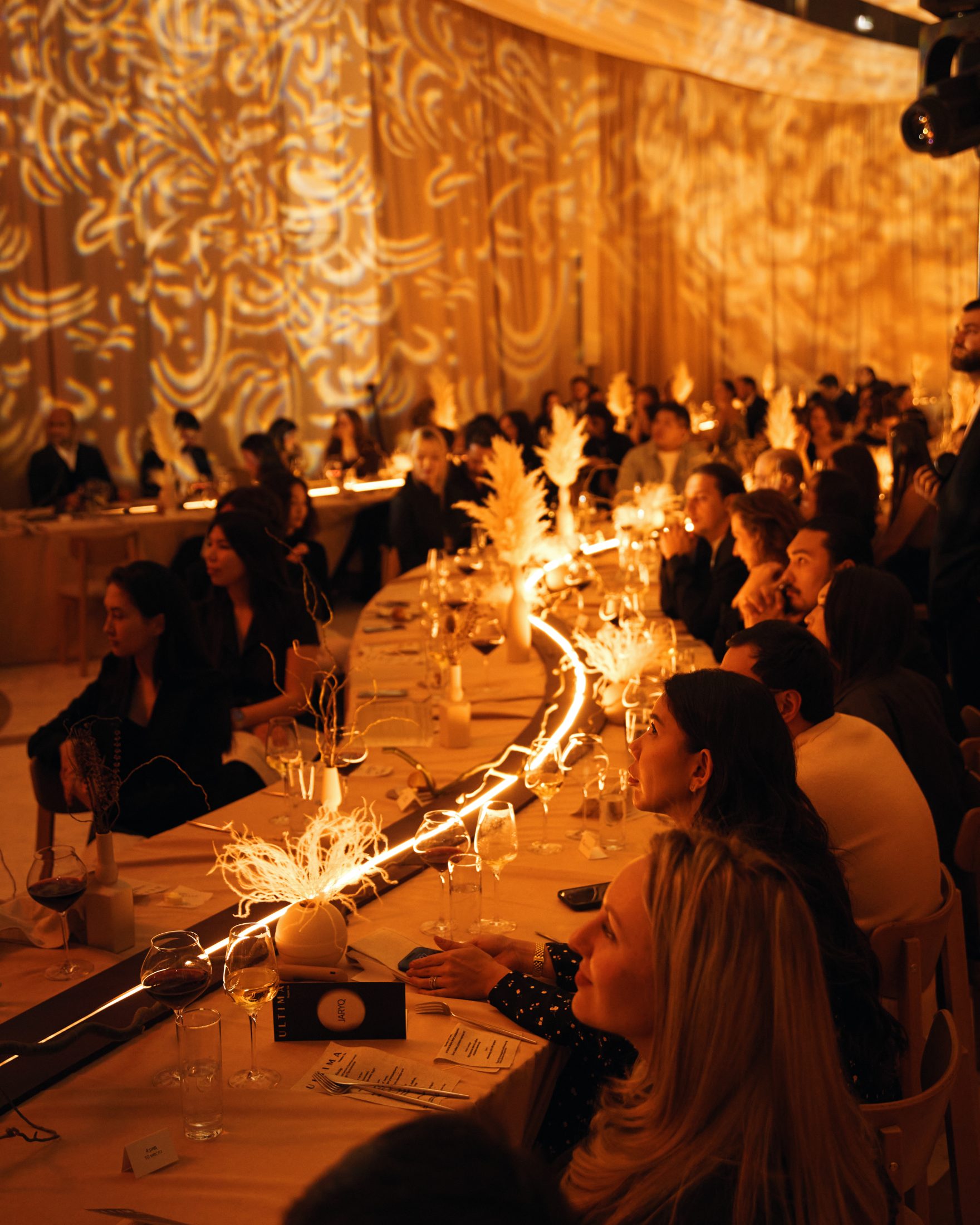 Атмосфера вечера-спектакля Ultima Jaryq была наполнена энергией творчества и вдохновением от новых форм искусства. Гости наблюдали музыкальные и световые перформансы, а после угощались изысканными блюдами от бренд-шефа ресторана Jent Александра Прошенкова, при создании которых шеф и его команда переосмыслили традиционную казахскую кухню. В конце вечера каждый гость получил саркыт — минибокс Ultima с десертом.