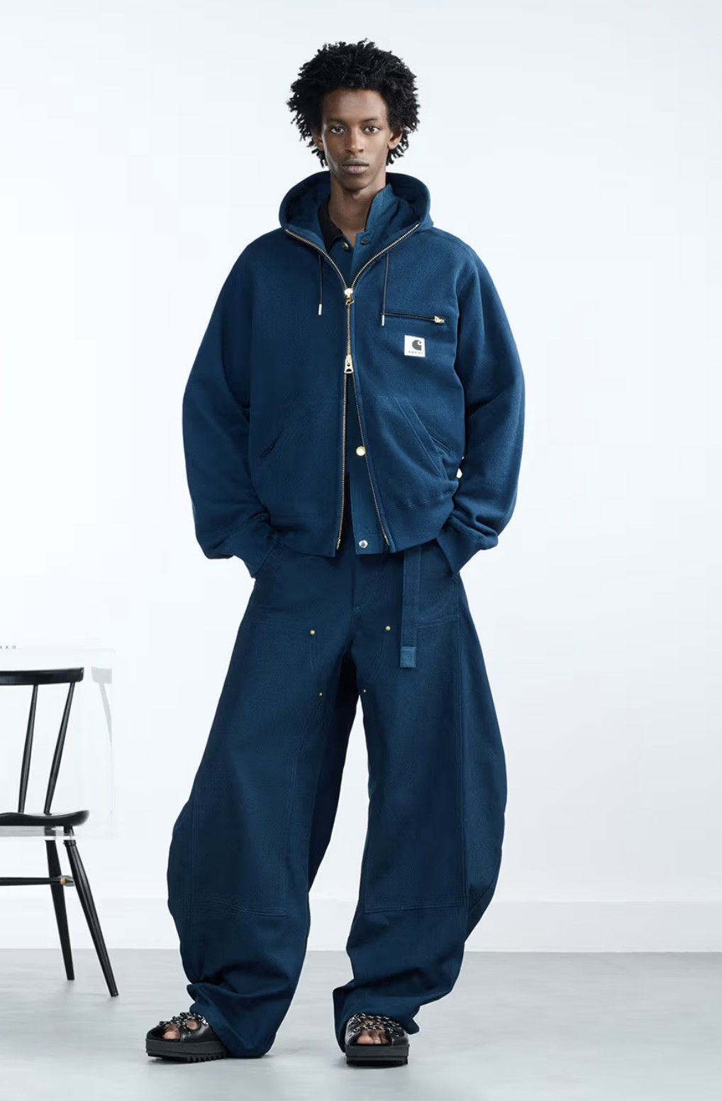 Кстати, модельер также включила в дроп коллаборации с Carhartt WIP и JM Weston, чтобы совместить утилитарность с гибридным дизайном. Художник Джефф Макфетридж также внес свой вклад в поэтическую линию. Весенне-летняя коллекция sacai 2026 года еще раз напоминает нам, каким адаптивным может быть бренд.