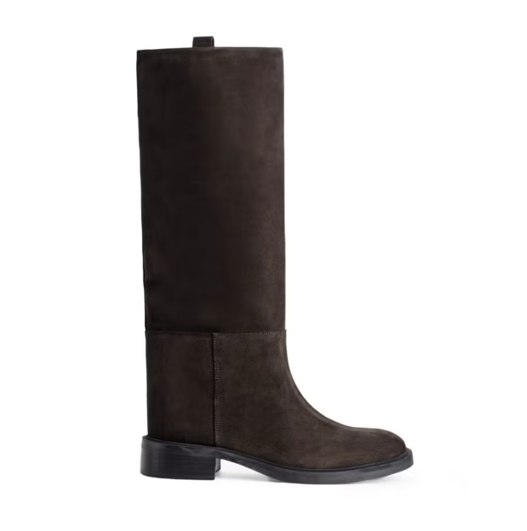 Неважно, как именно будут выглядеть сапоги, главное, чтобы они были на плоской подошве и с высоким голенищем. А вот внизу они, напротив, могут напоминать элегантные туфли или удобные мокасины. Комфорт превыше всего.