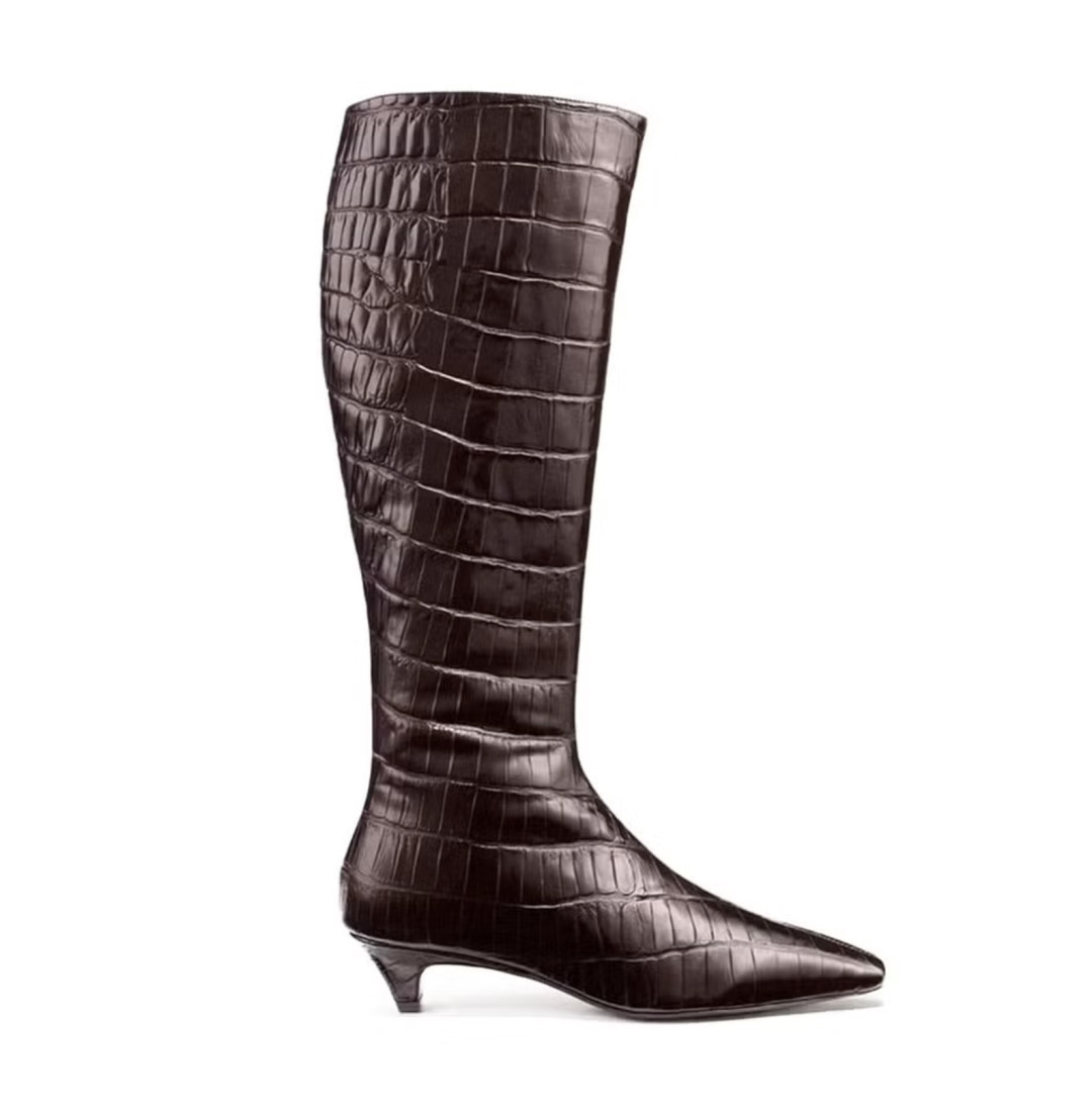 Такие модели вызывают у нас теплое чувство ностальгии по 90-м. Графичность линий и квадратный носок составят отличную компанию любым зимним образам: от повседневных и рабочих до торжественных.