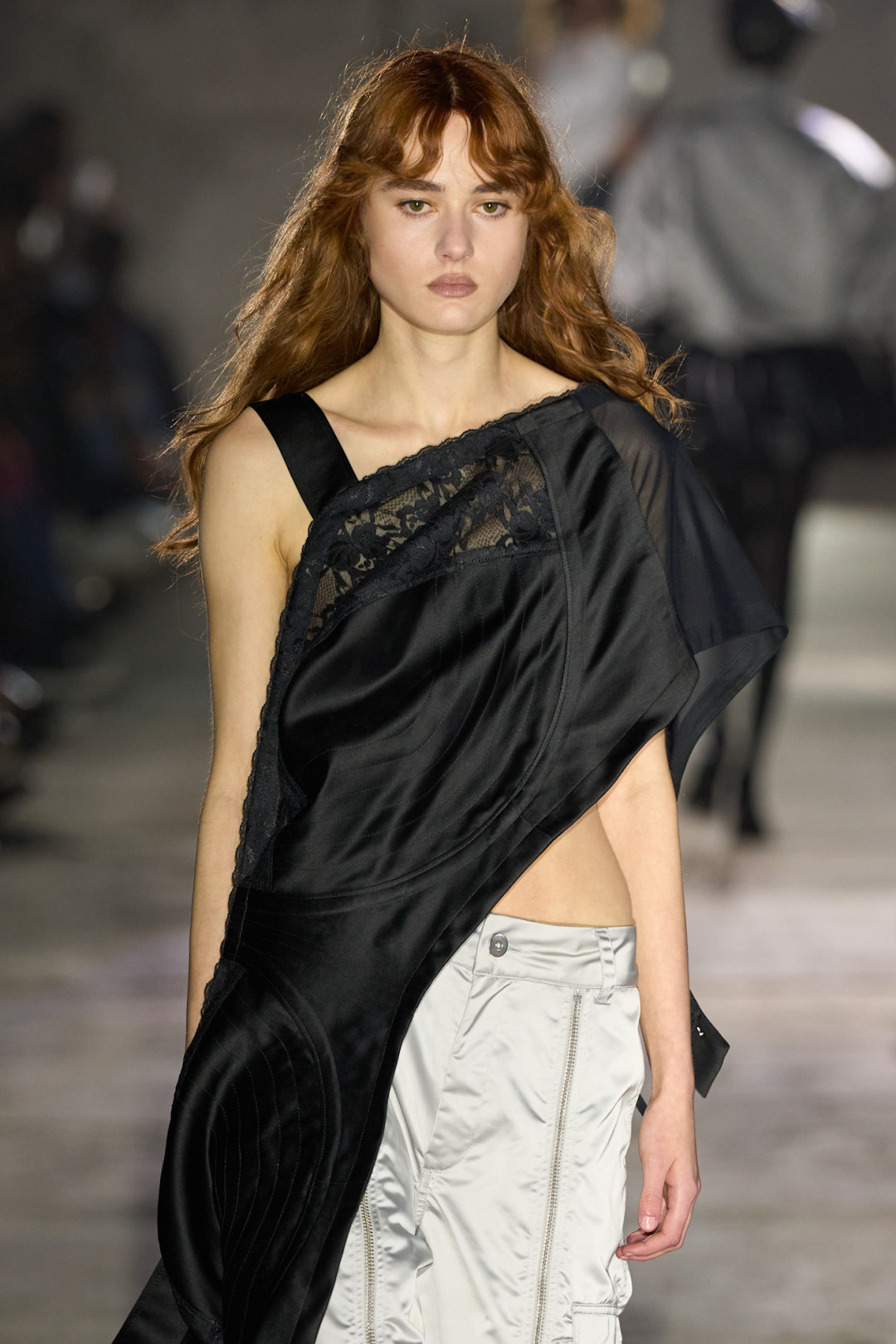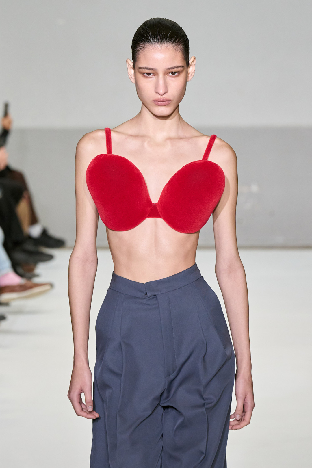 Осенне-зимний показ Vaquera 2025 года стал, пожалуй, определяющим. Некоторые модели надели асимметричные топы со свободными атласными брюками, в этом на первый взгляд ничего такого нет. Но если присмотреться, то окажется, что необычный верх — это гигантский бюстгальтер. На прошедшей Неделе моды выяснилось, что бра и вовсе стали главными героями (пусть и не самыми очевидными) многих показов: от Miu Miu до Valentino. Но эти марки не единственные, кто решил экспериментировать с нижним бельем.